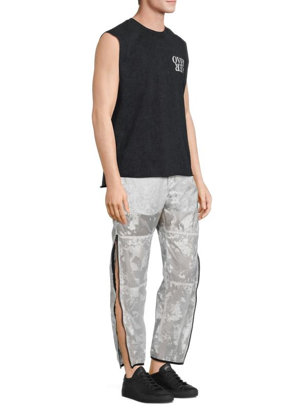OVER OVER's Pop Over track pants offer a relaxed fit, featuring an abstract foil print and drawstring elasticized waistband.Drawstring elasticized waistband Side slip pockets Elasticized zip cuffs 100% nylon Machine wash Imported