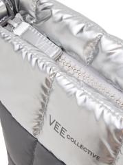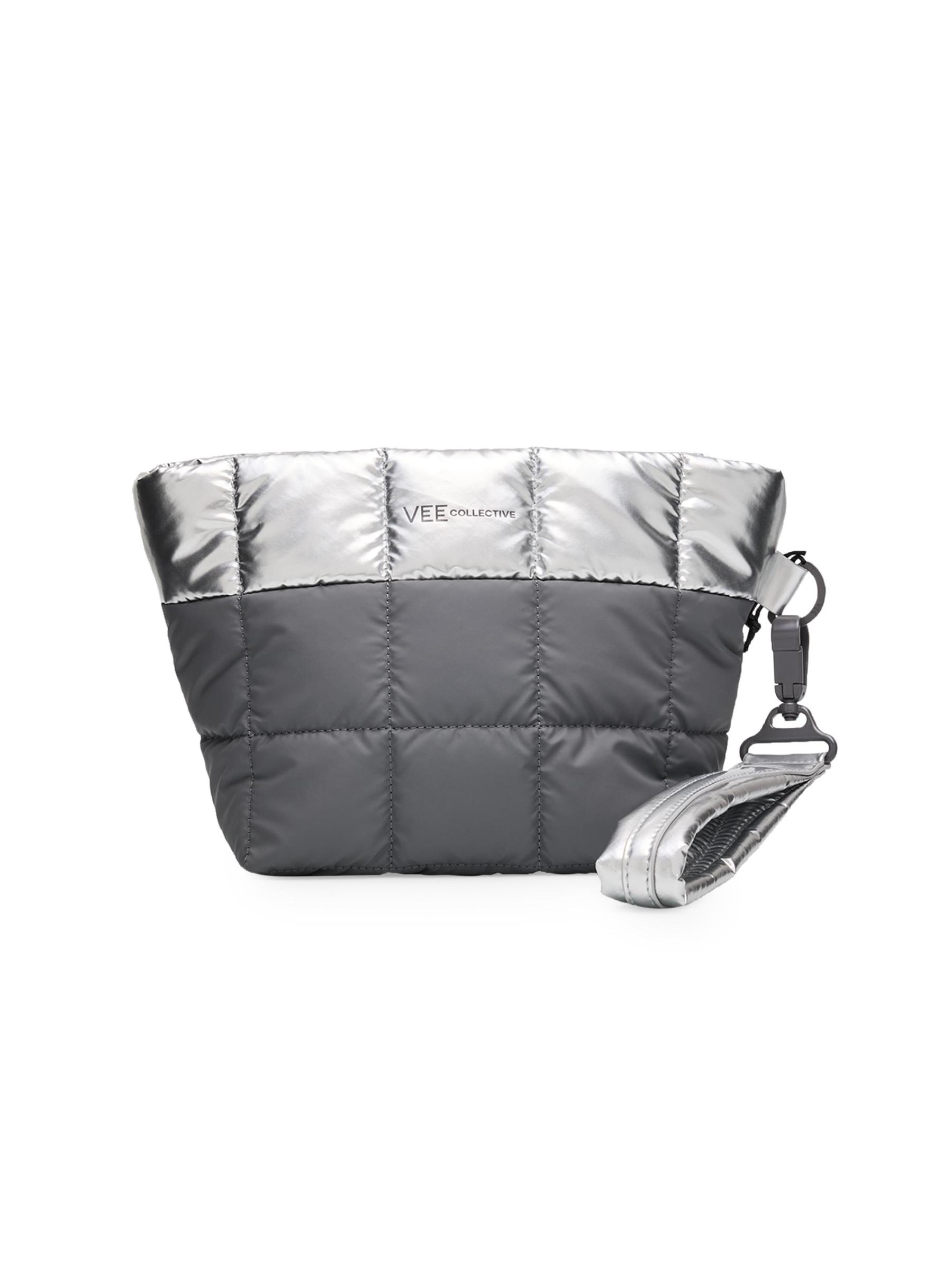 This Porter clutch from Vee Collective features a puffer square quilted finish with metallic details and a removable wrist strap. The style can be worn as a clutch or shoulder bag.