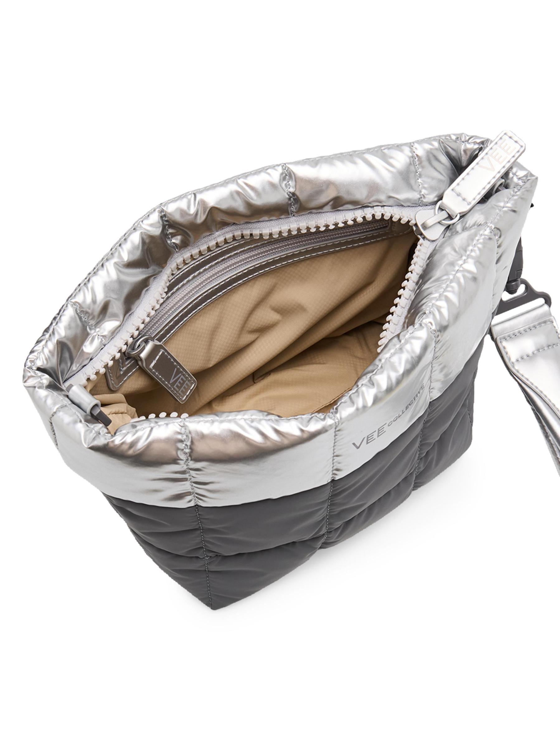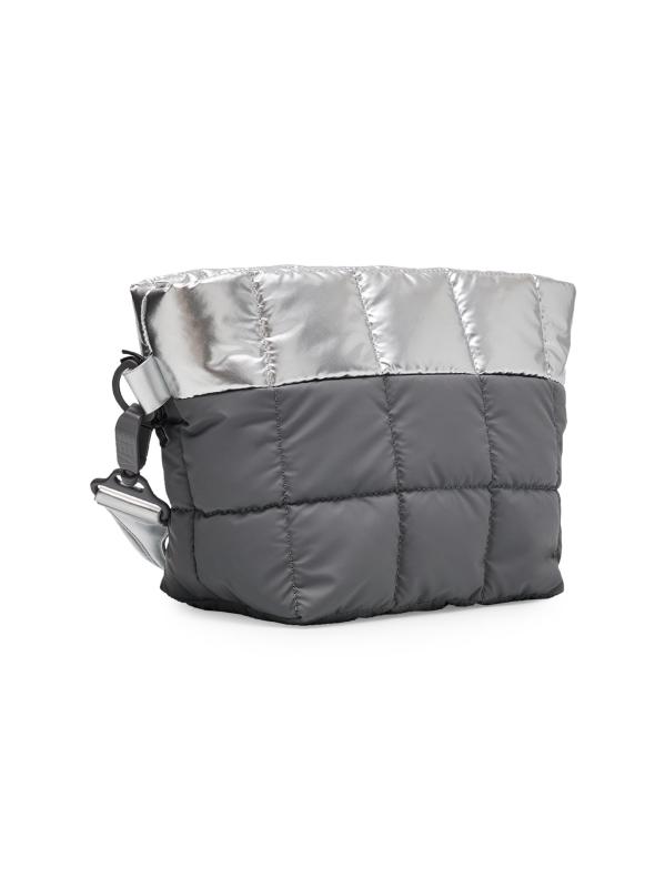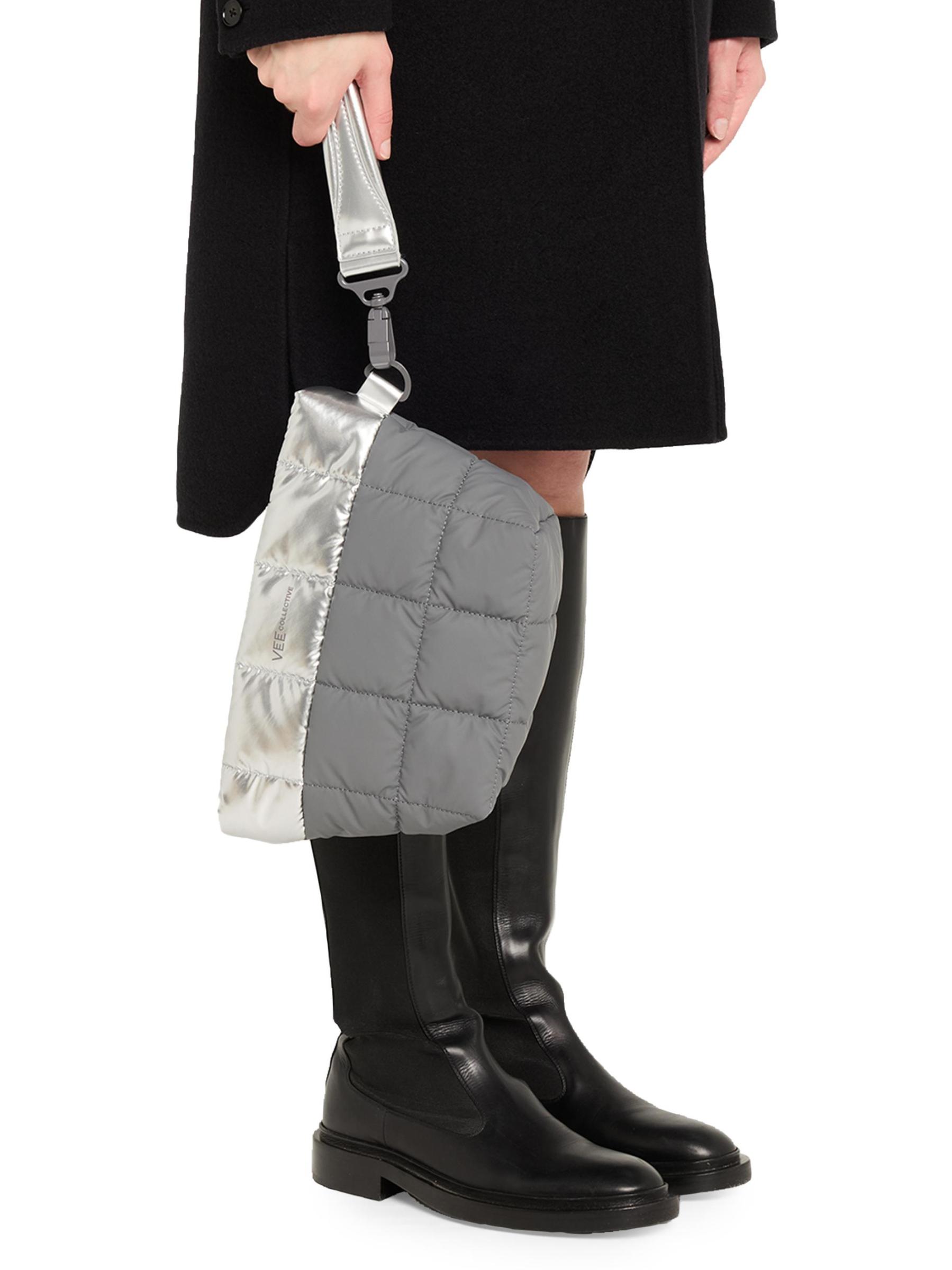 This Porter clutch from Vee Collective features a puffer square quilted finish with metallic details and a removable wrist strap. The style can be worn as a clutch or shoulder bag.Removable wrist strap Adjustable, removable shoulder strap Interior, one zip pocket, two slip pockets Top zip closure Nylon/polyamide/polyurethane Lining: Nylon Trim: Metal Imported