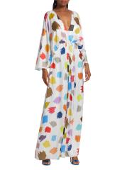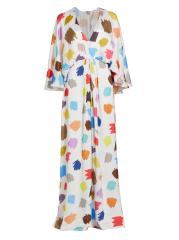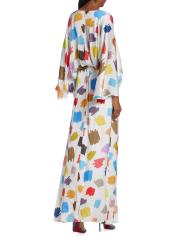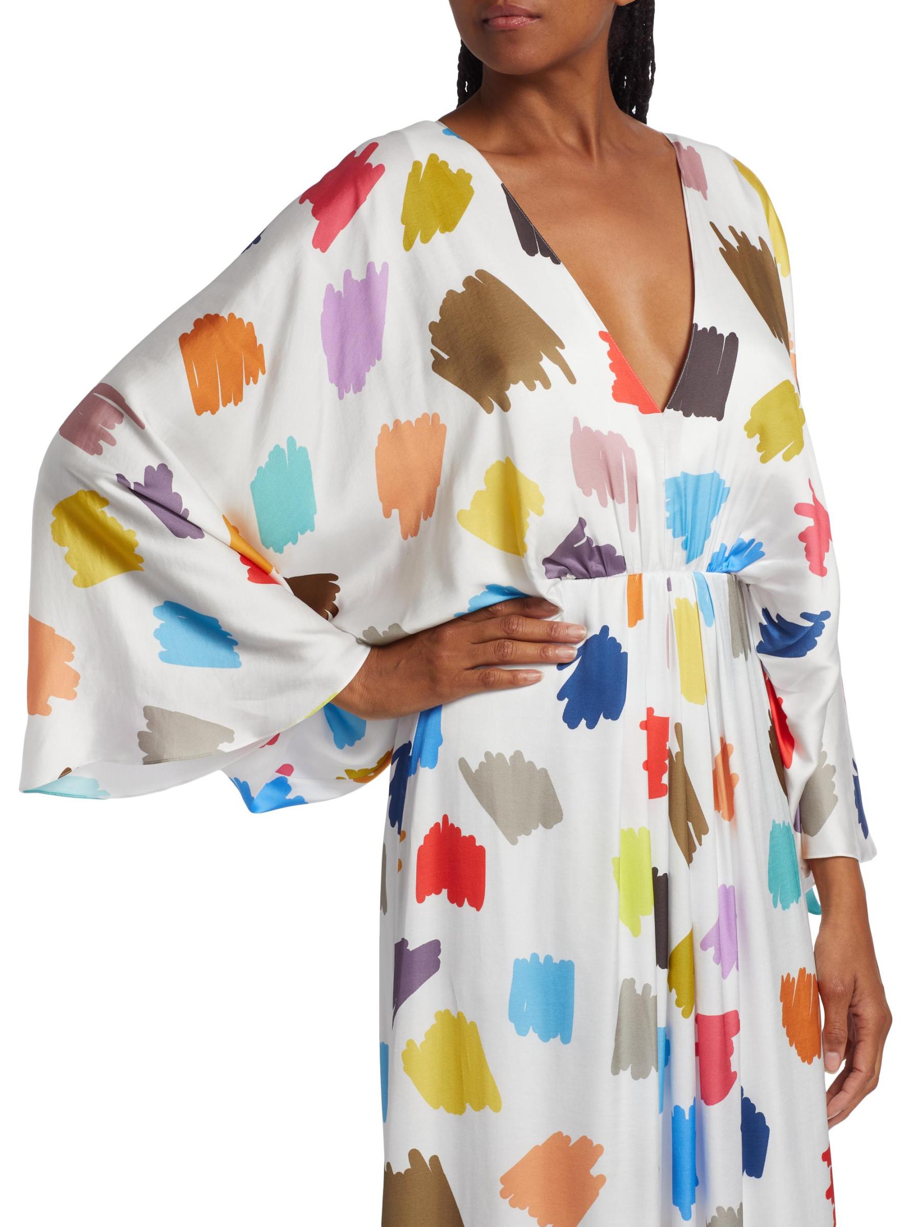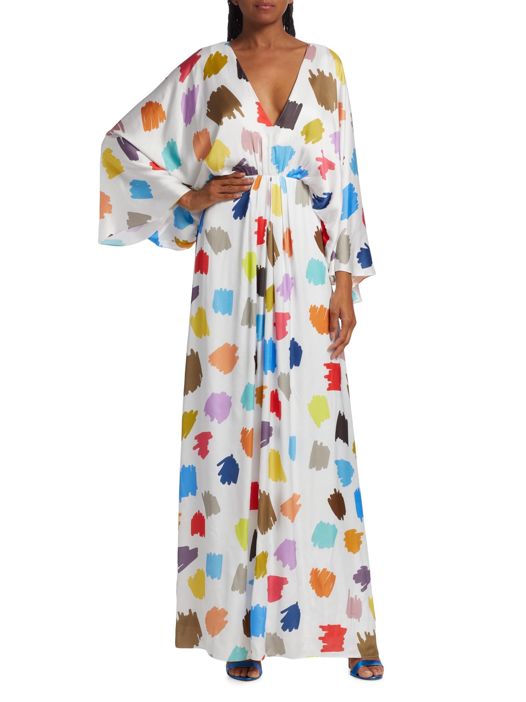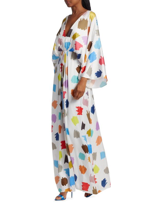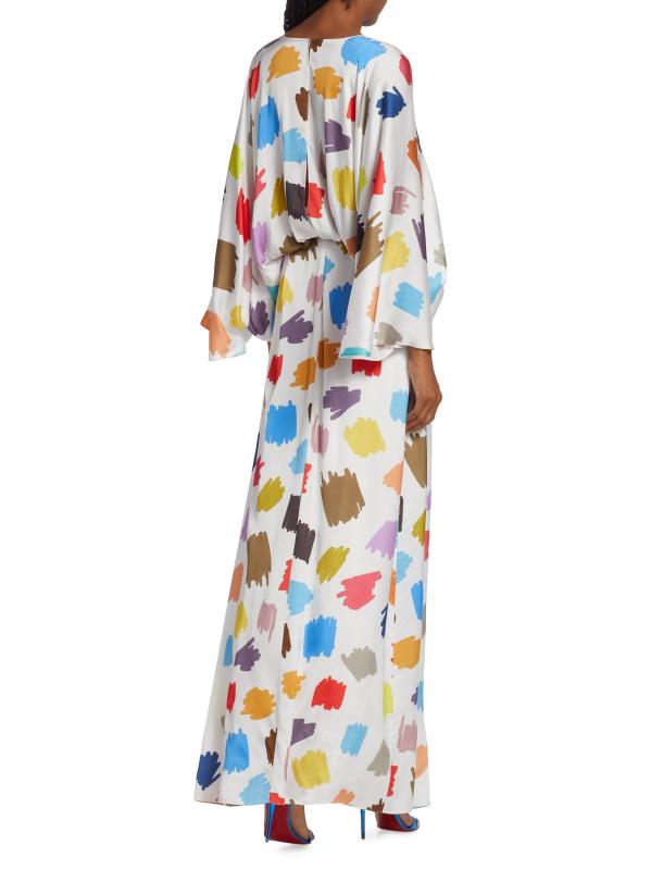 Crafted of flowing satin with a colorful scribble print, this Halpern maxi dress is designed with breezy drape sleeves.