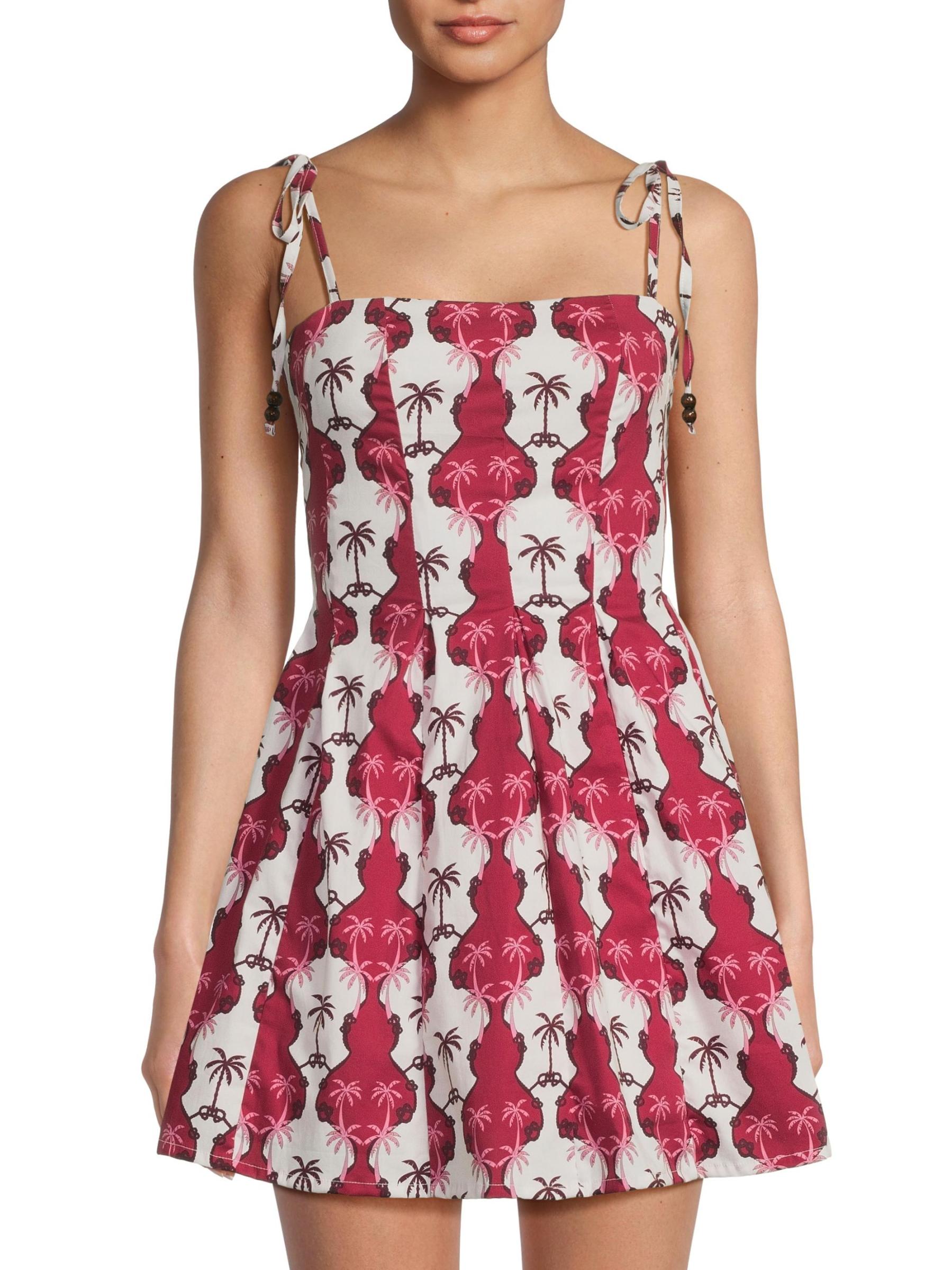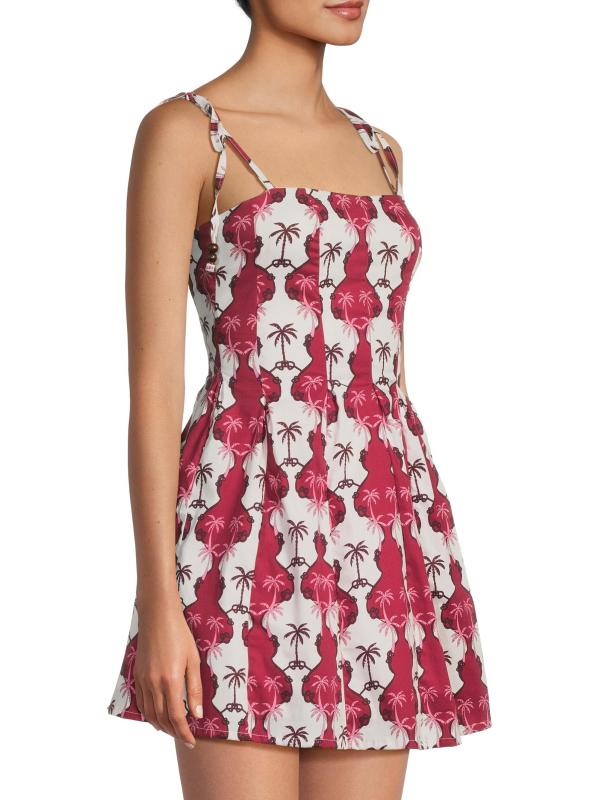 Crafted of cotton with a hint of stretch, the Paisley minidress from Peixoto features a vibrant print and shoulder ties.
