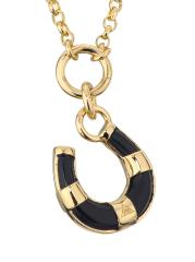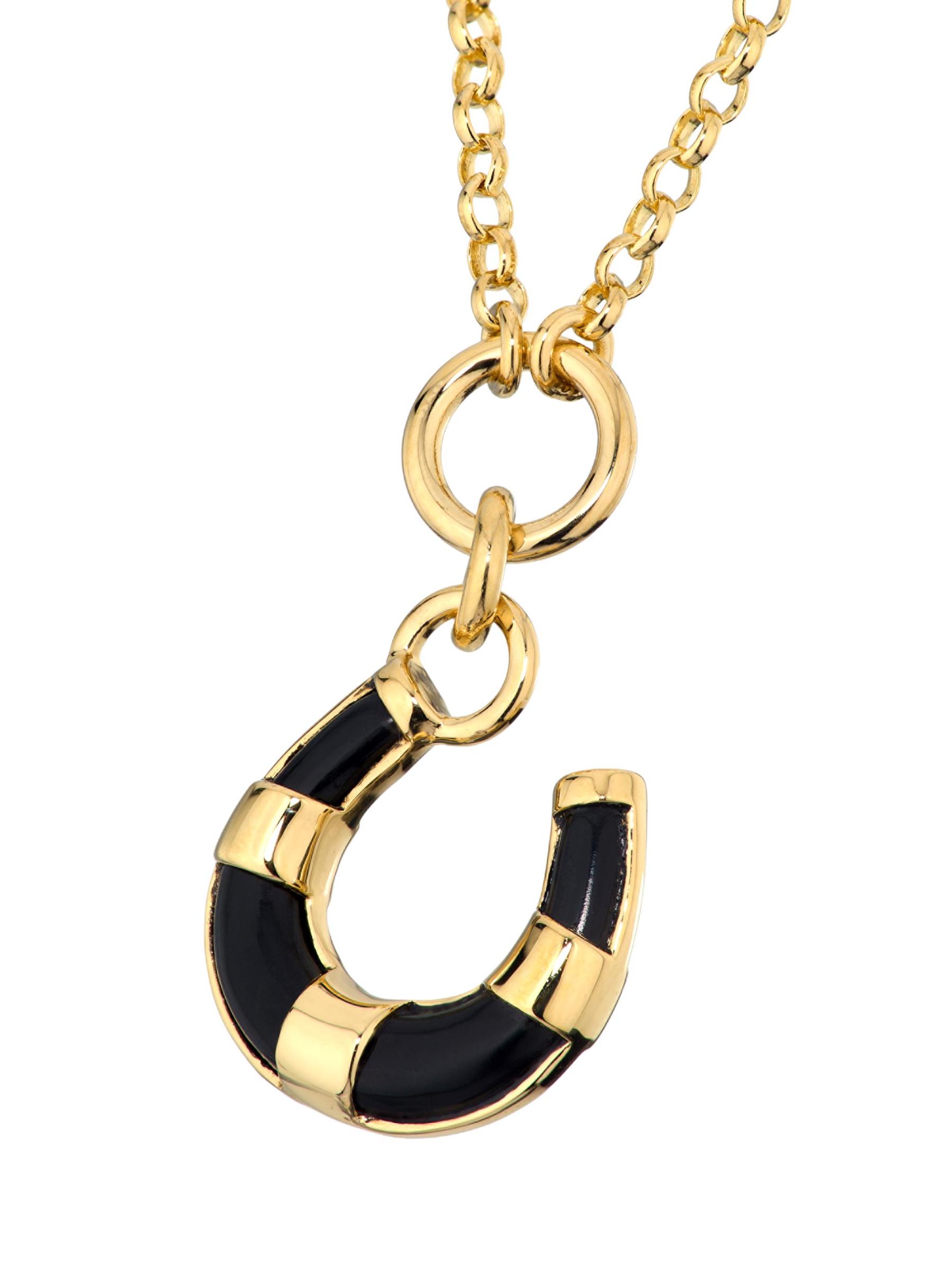 Protection 18K Yellow Gold Black Onyx Horseshoe Pendant Necklace