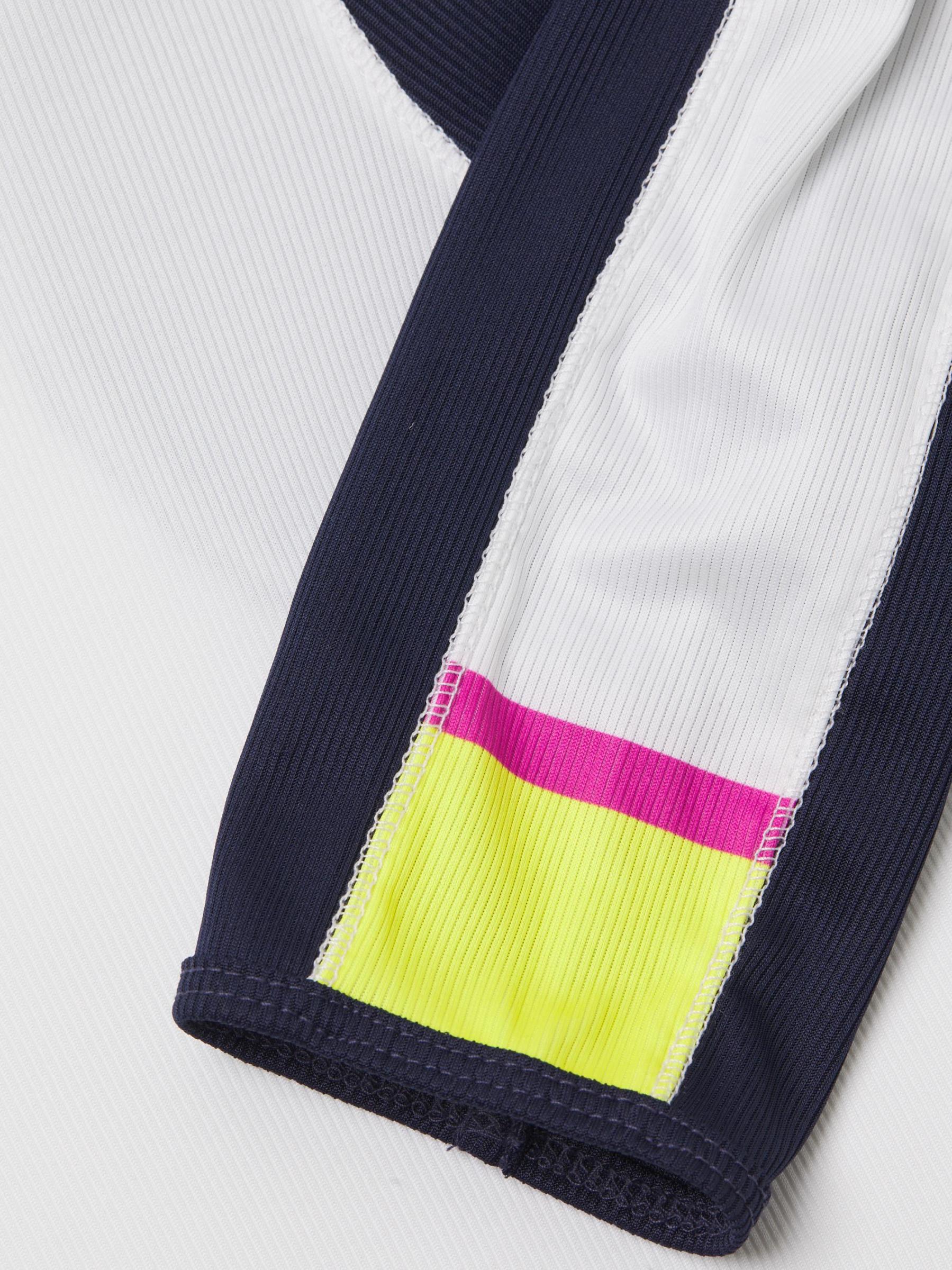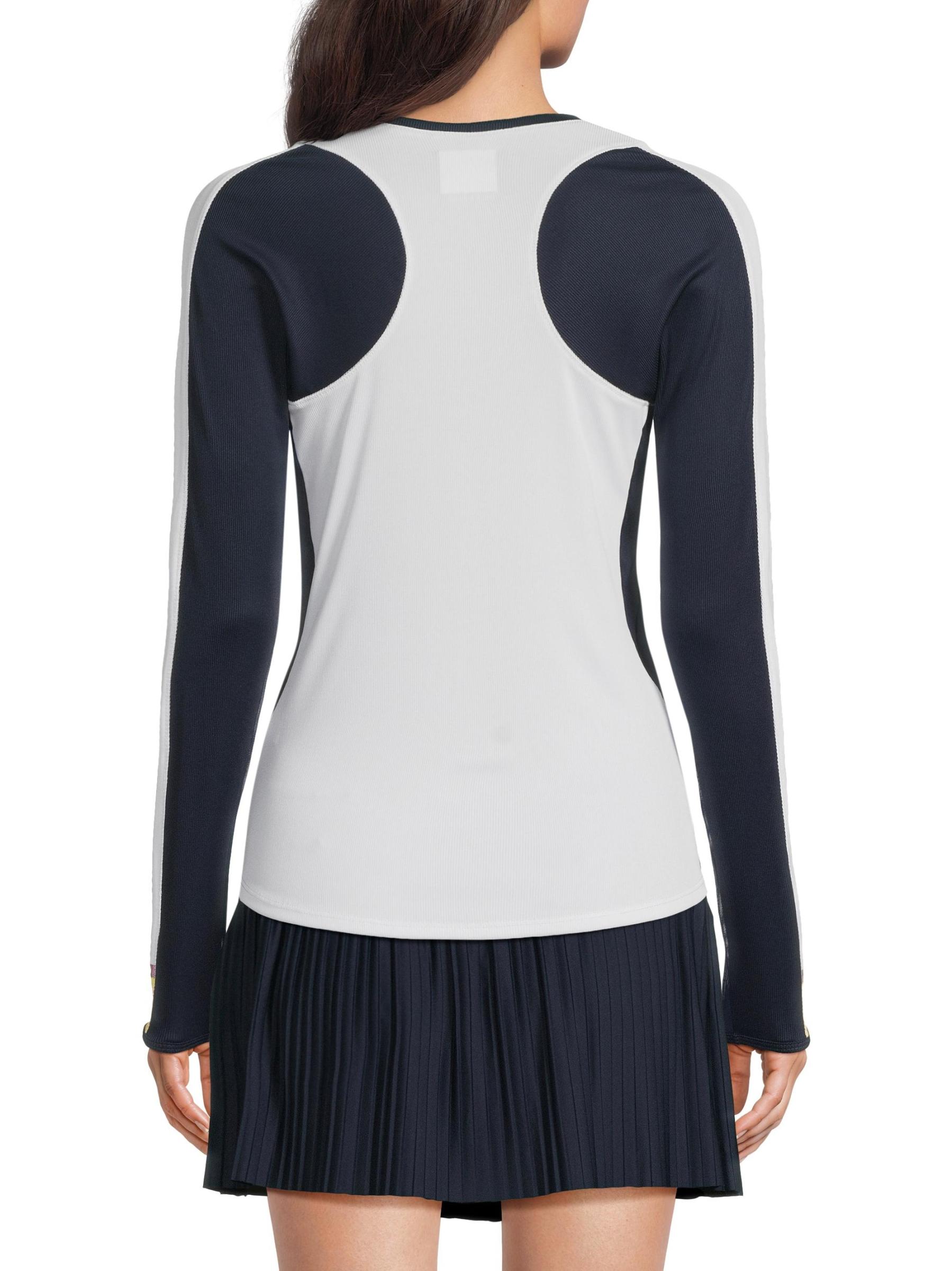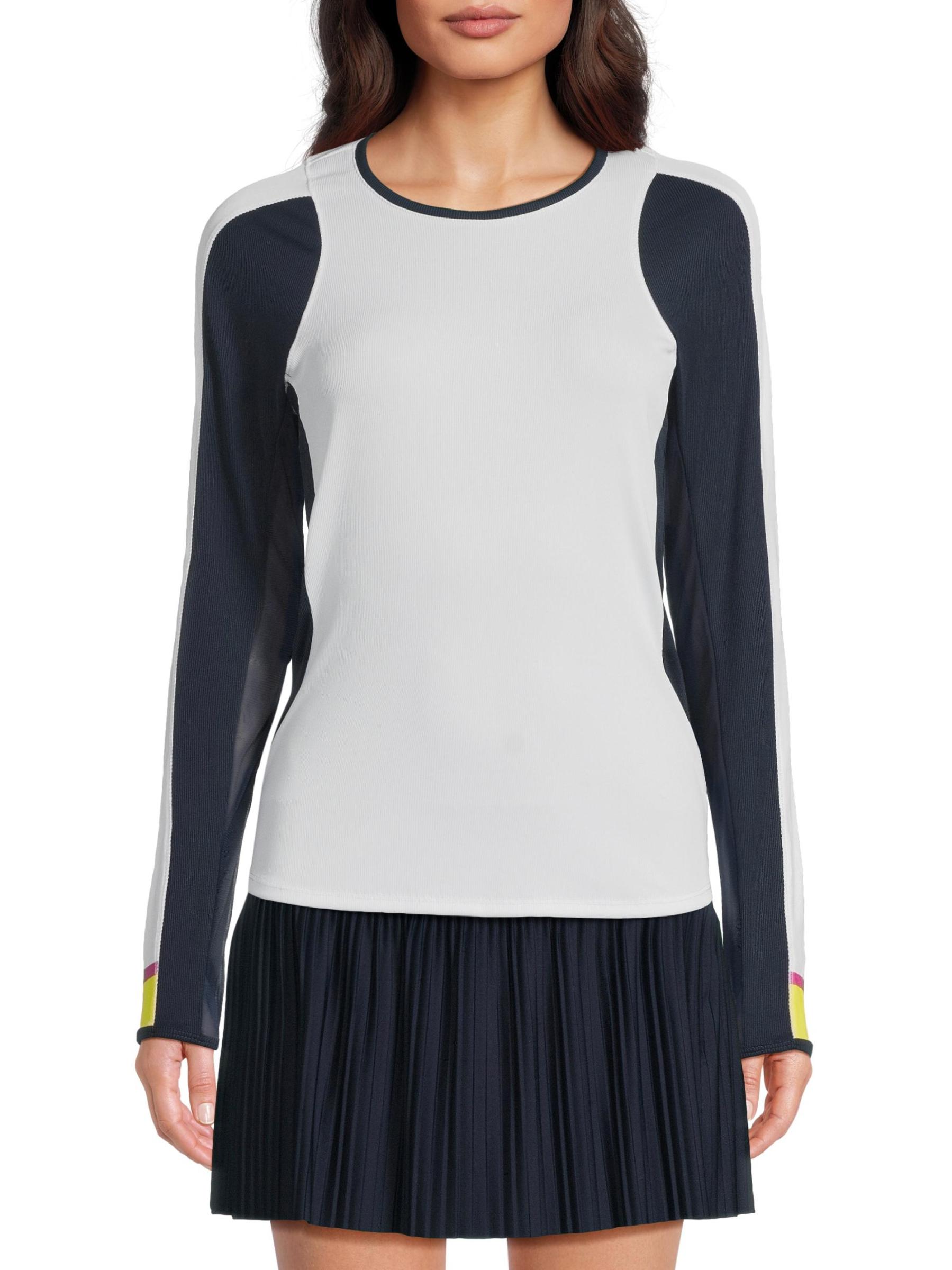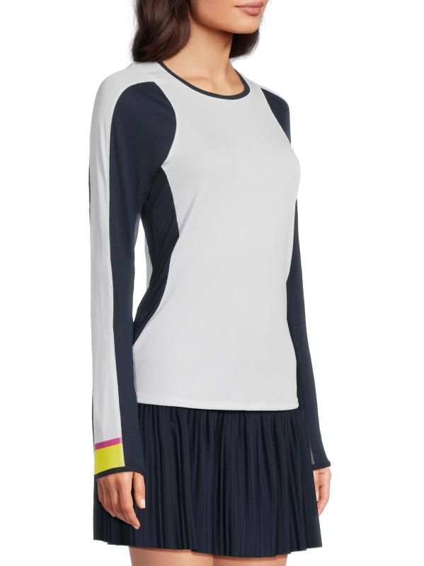 From the PS I Love You Collection. This Bound ribbed T-shirt from Lucky in Love is crafted of stretch fabric and features colorblocked long sleeves and contrast racing striped cuffs.Crewneck Long sleeves Pulls over 95% polyester/5% spandex Machine wash Imported