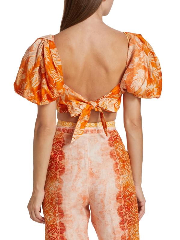 From the Raiz-R23 Collection. Beatriz Camacho's Congo top showcases a square neckline and dramatic puff sleeves. This cropped style is finished with a self-tie back.Squareneck Short puff sleeves Cropped silhouette Self-tie back closure 100% Ramie Dry clean Imported