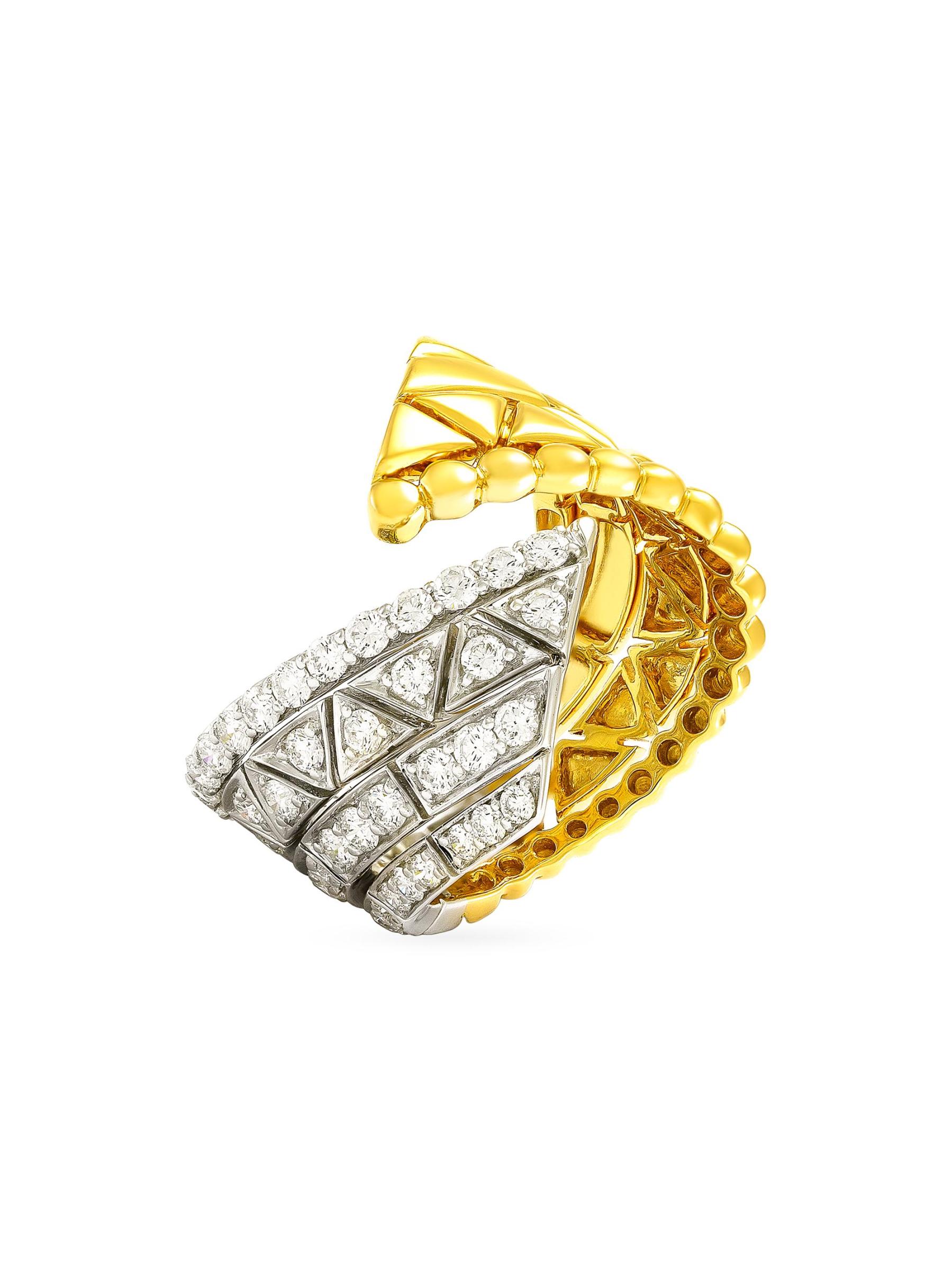 From the Reflexion Collection. This open ring from Etho Maria features a striking twisted shape. Crafted of 18K white and yellow gold, the style showcases geometric shapes set with glittering diamonds.Diamonds, 1.10 tcw Diamond color grade: D-F Diamond clarity grade: VVS 18k white and yellow gold Imported