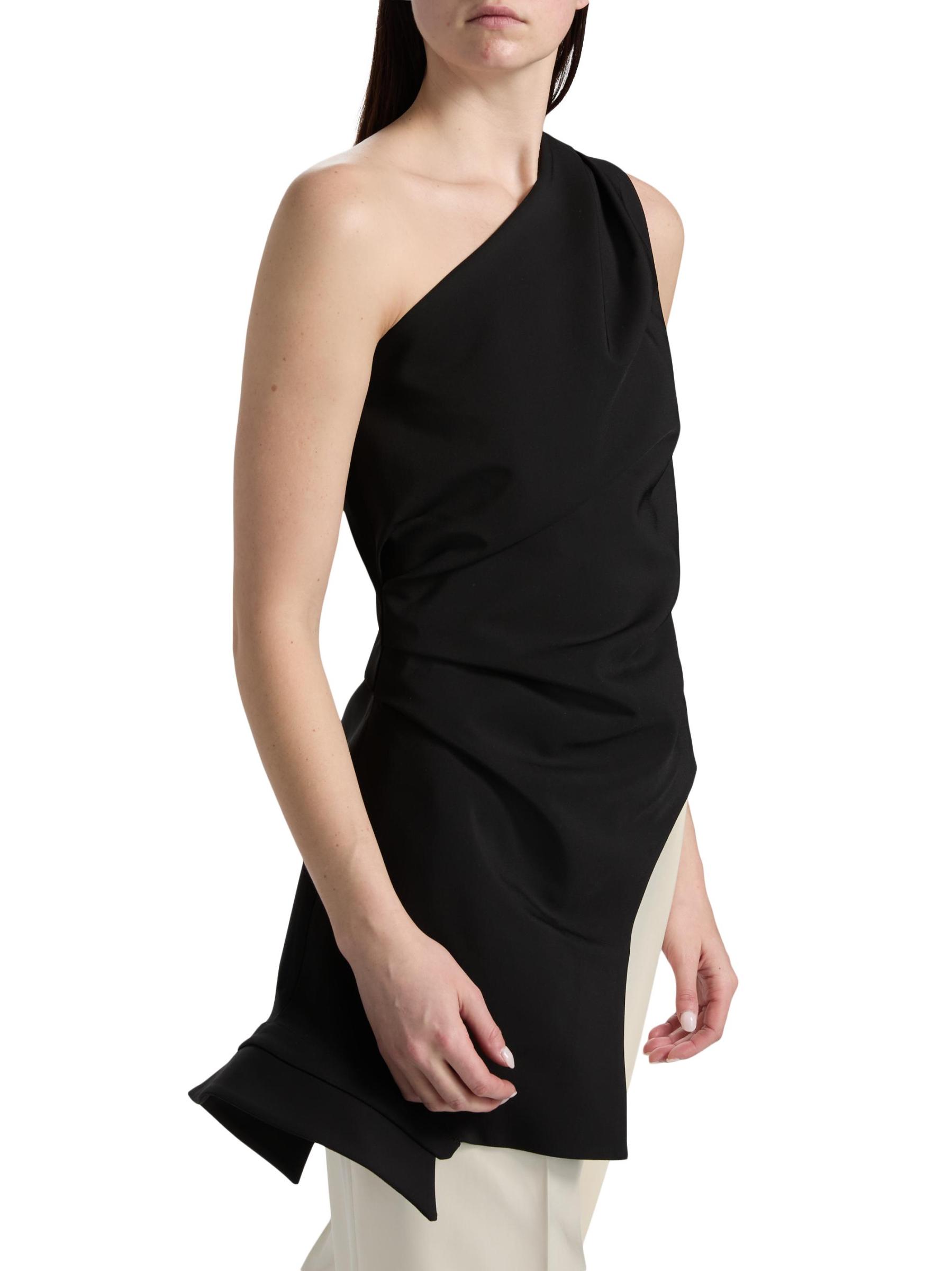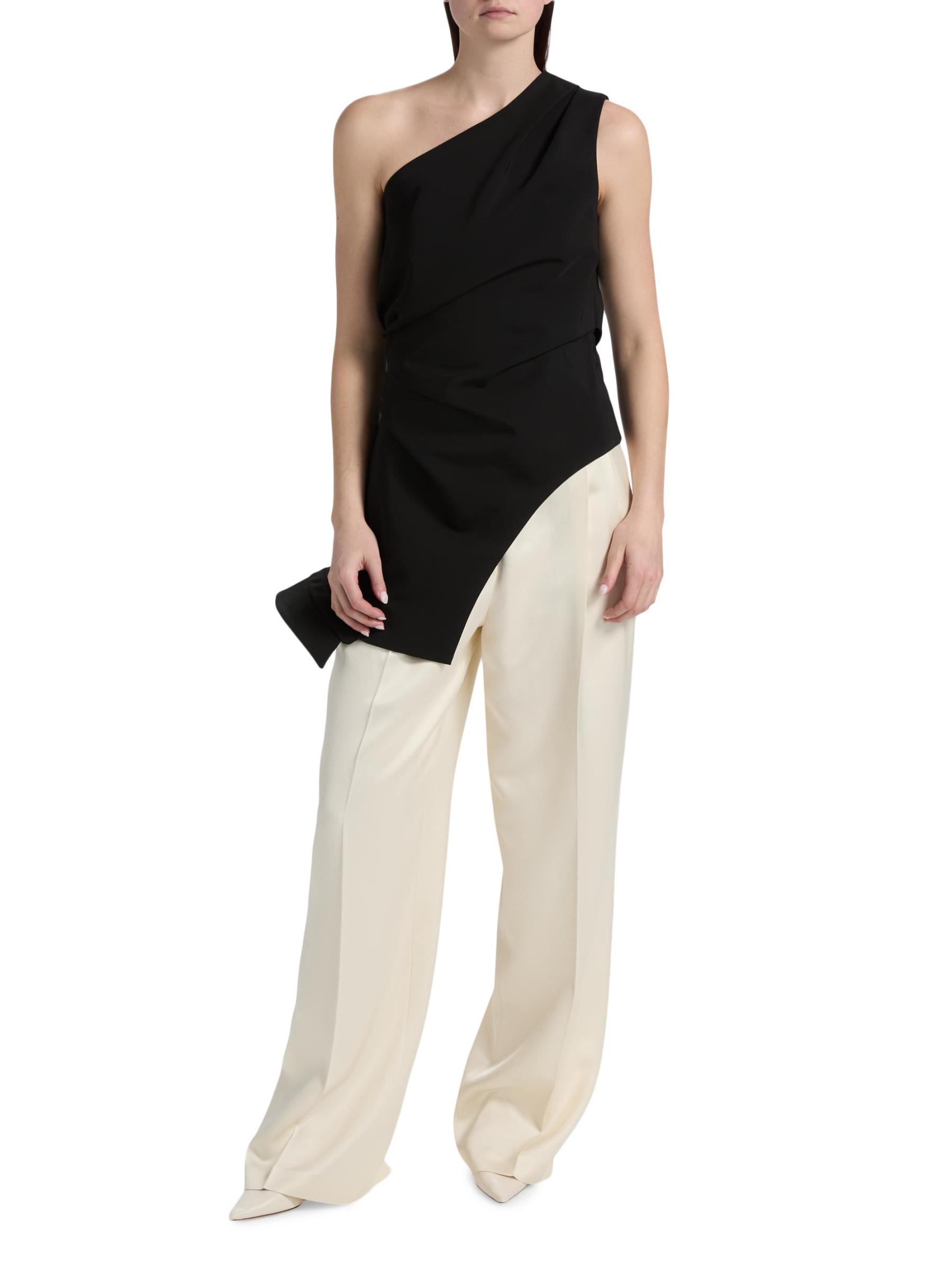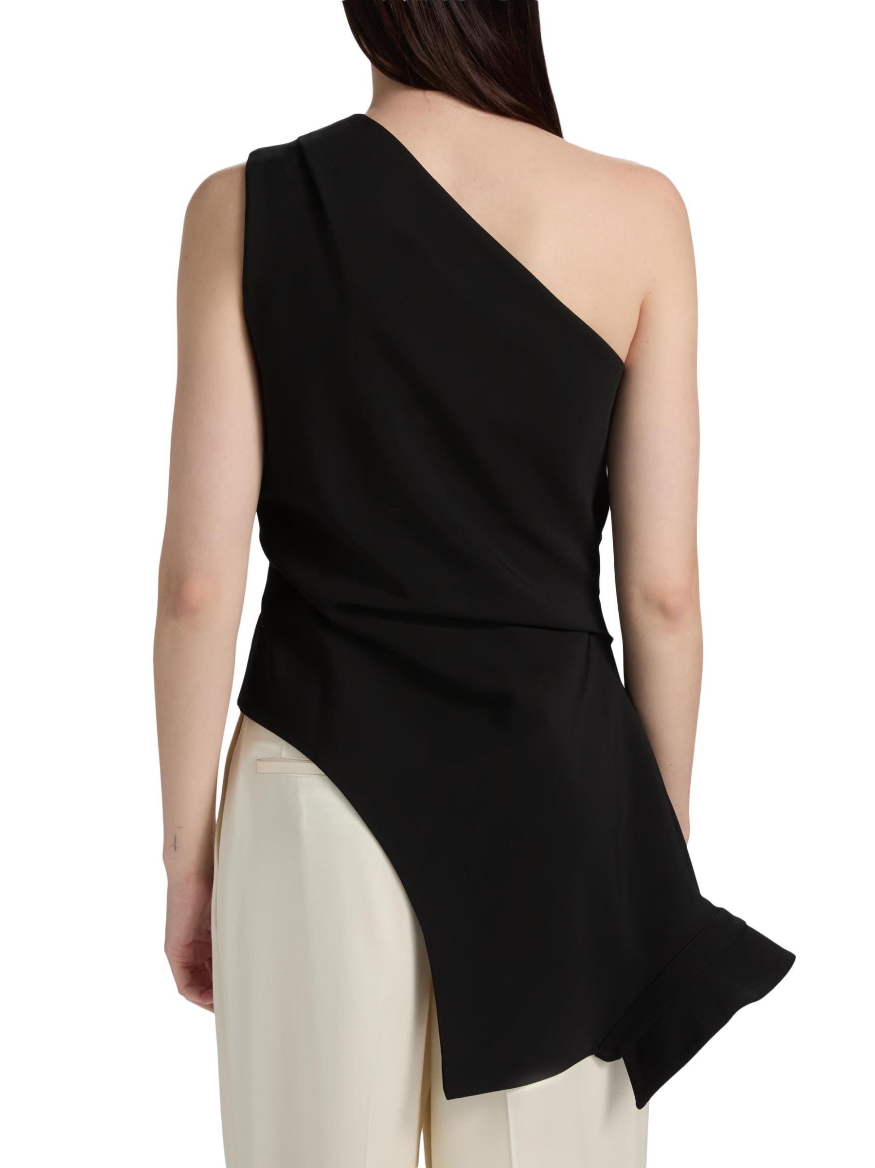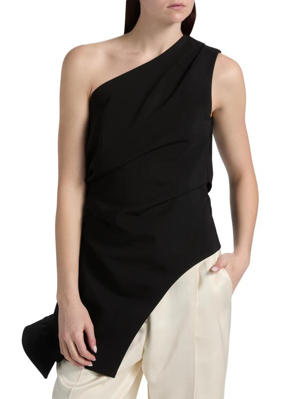 Róhe's Reimagined one-shoulder top features a draped, asymmetric hem and sleeveless cut, adding to its sculptural look.