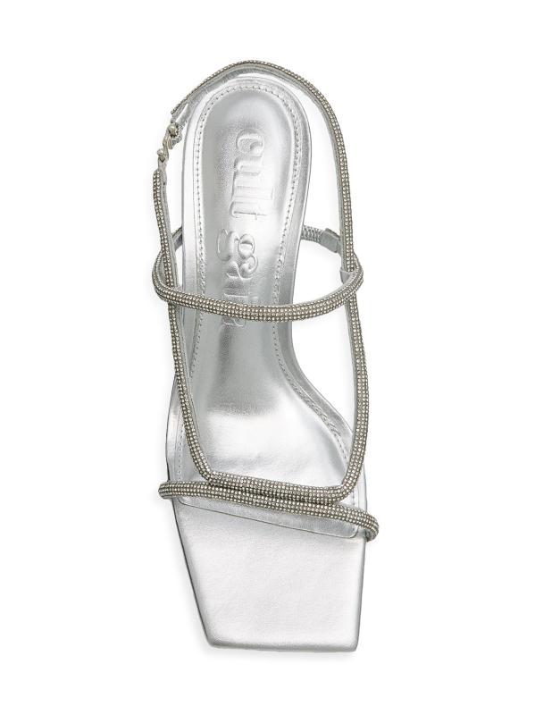 These Reina sandals from Cult Gaia are crafted of leather and are decorated with rhinestones and an architectural heel.