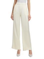 LaQuan Smith's collection showcases daring, provocative designs with figure-hugging dresses and high-cut bodysuits that define the brand's signature style. Inspired by powerful female icons of the 1980s and Studio 54 era, each piece exudes strength and glamour. Crafted of silk charmeuse, these high-rise trousers showcase a wide-leg silhouette and convenient side pockets.Band waistband Pleated front Side slit pockets Back mock-welt pockets Side zip closure 100% Silk Dry clean Made in USA