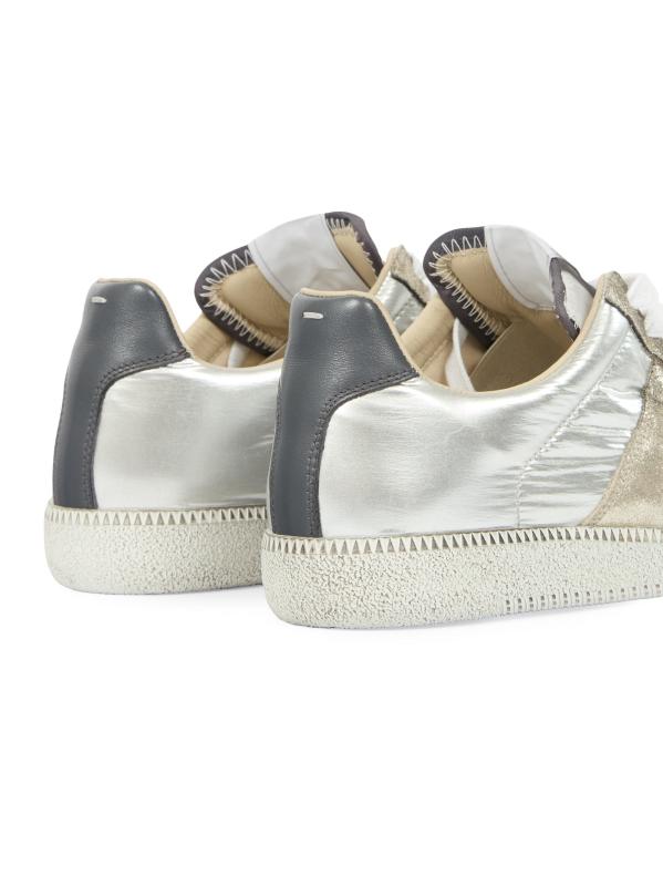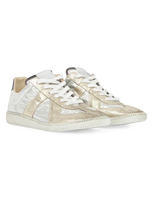 Made in Italy, Maison Margiela's Replica low-top sneakers are crafted of metallic leather.