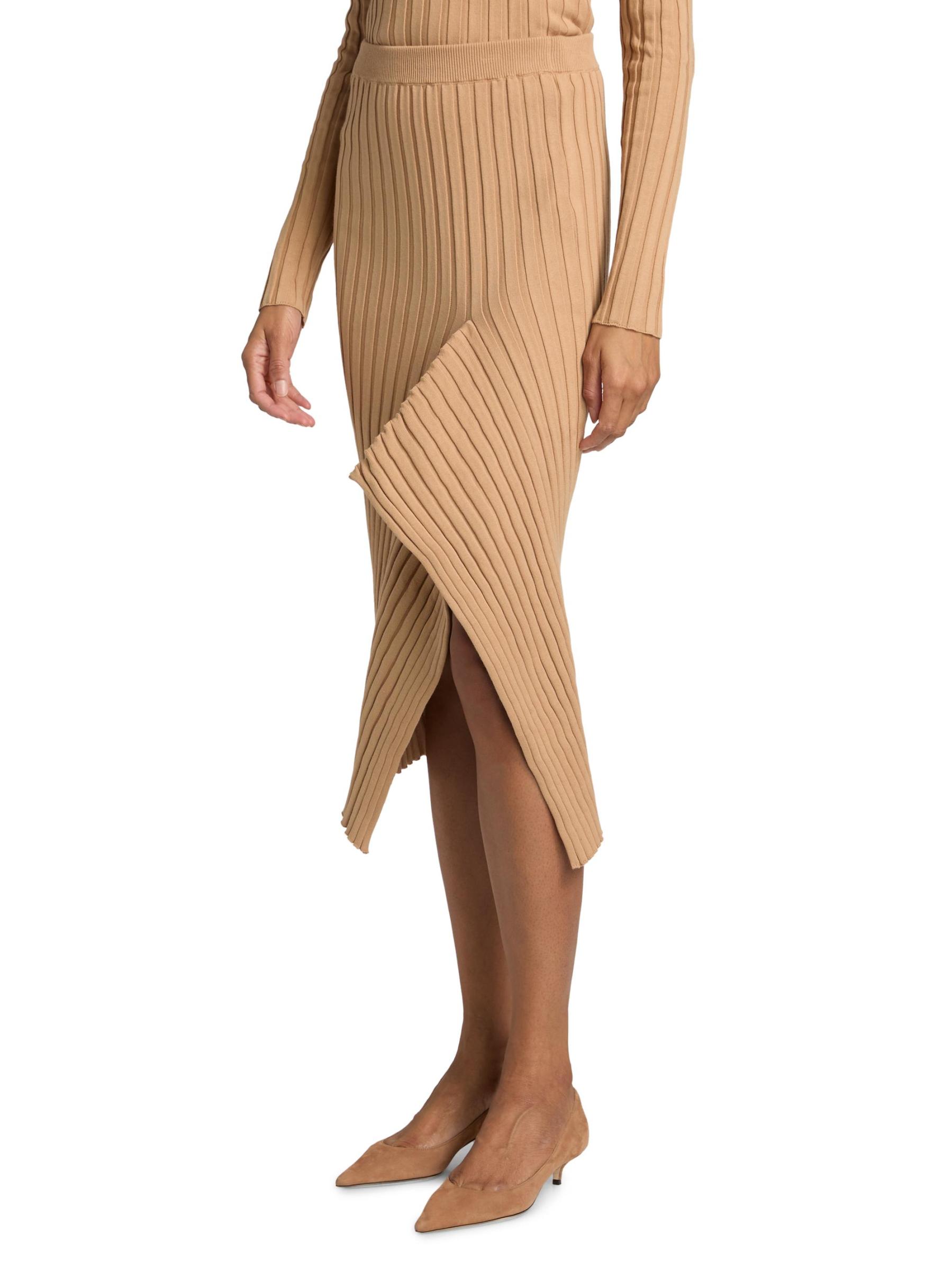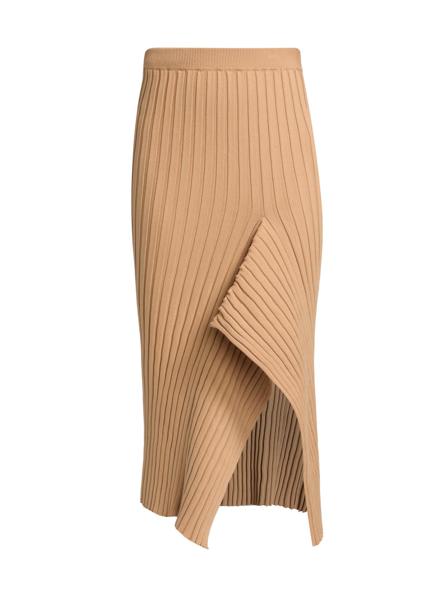 Crafted from cotton in Italy, this Stella McCartney architectural midi-skirt features a winged front slit and a chunky rib-knit finish.