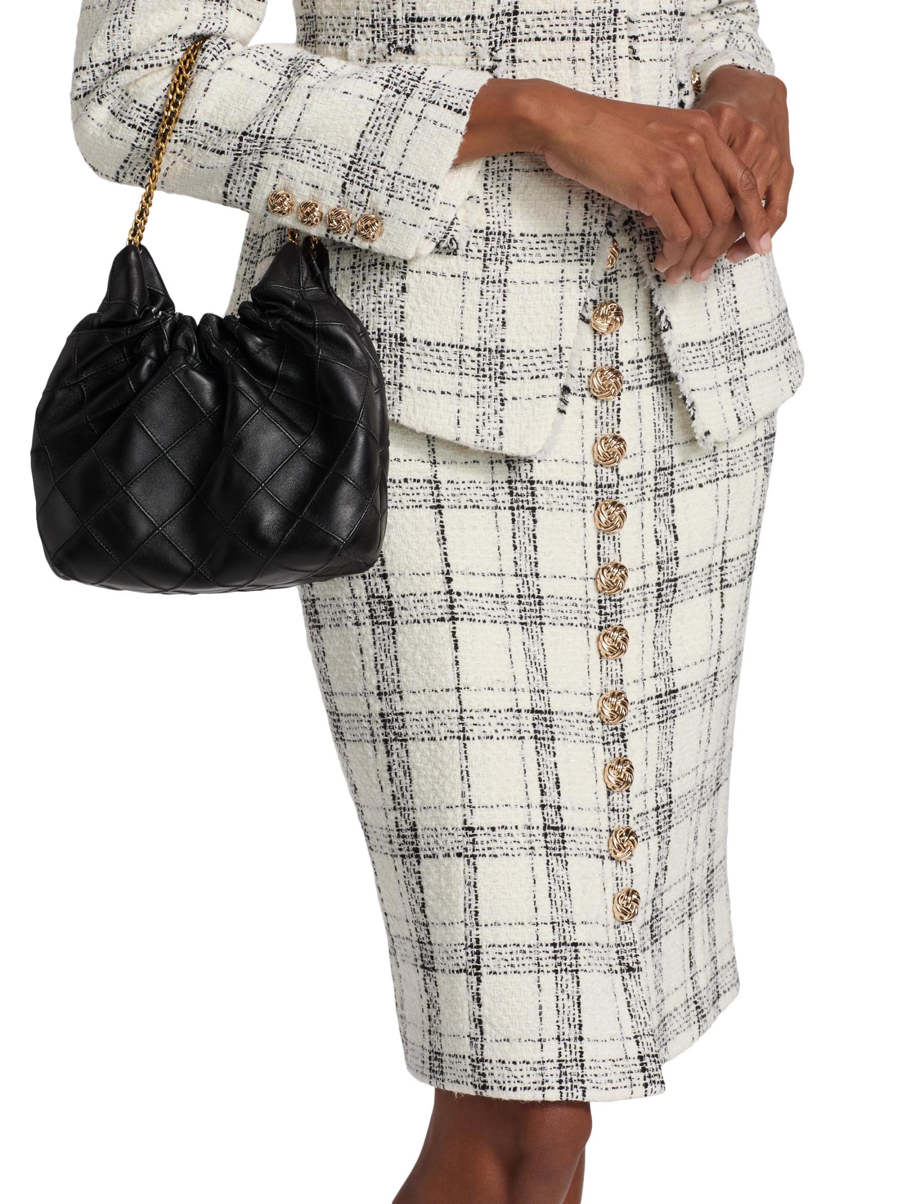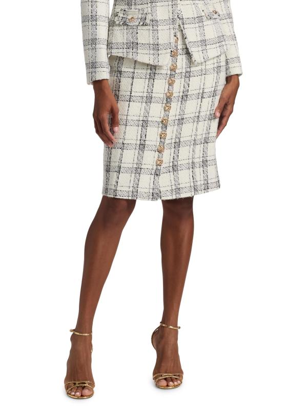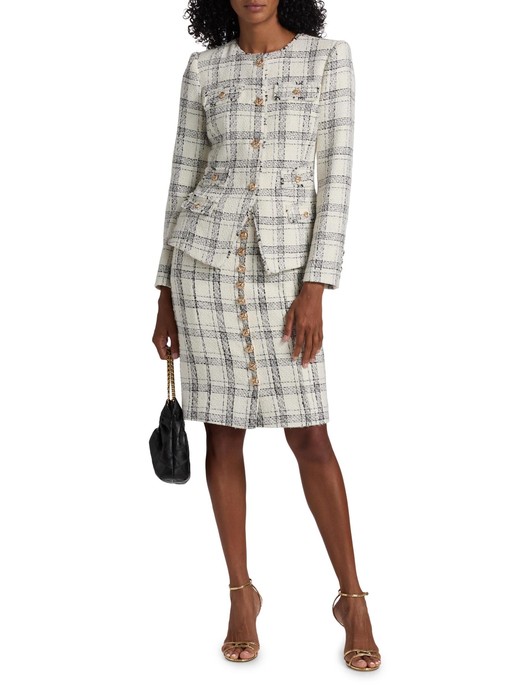 Riley Windowpane Metallic-Tweed Knee-Length Skirt