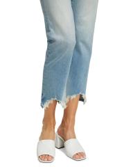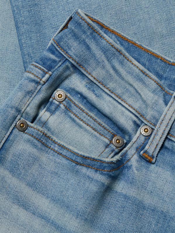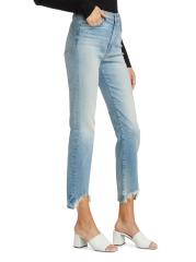 Raw-edge distressed hems completes the look of these high-rise straight-fit jeans.
