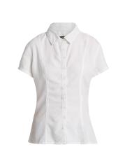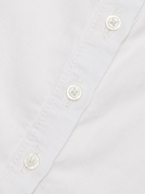 EB Denim's Rosie short-sleeve blouse elevates the tailored fit with a spread collar, button-front closure, and a touch of linen.