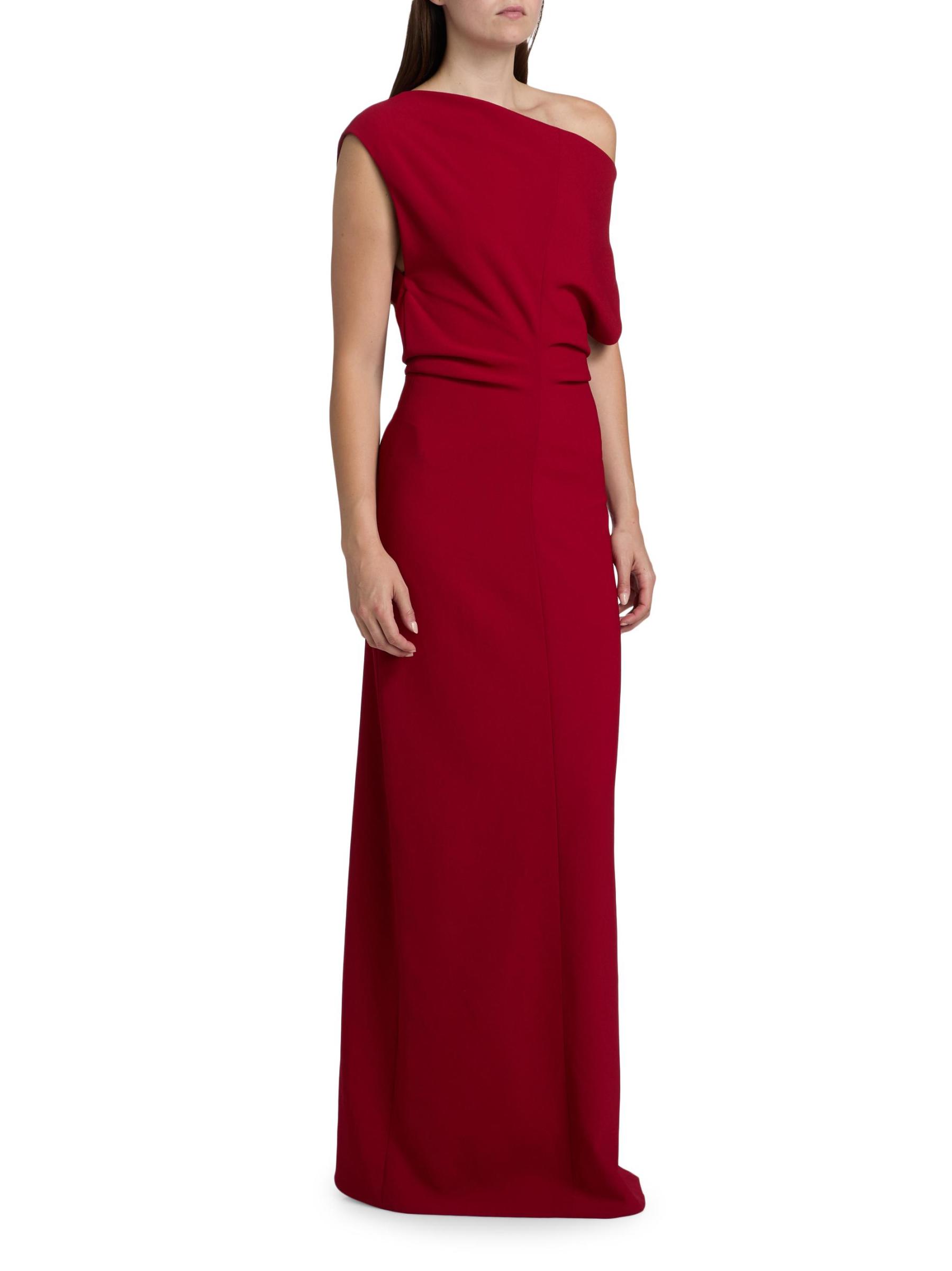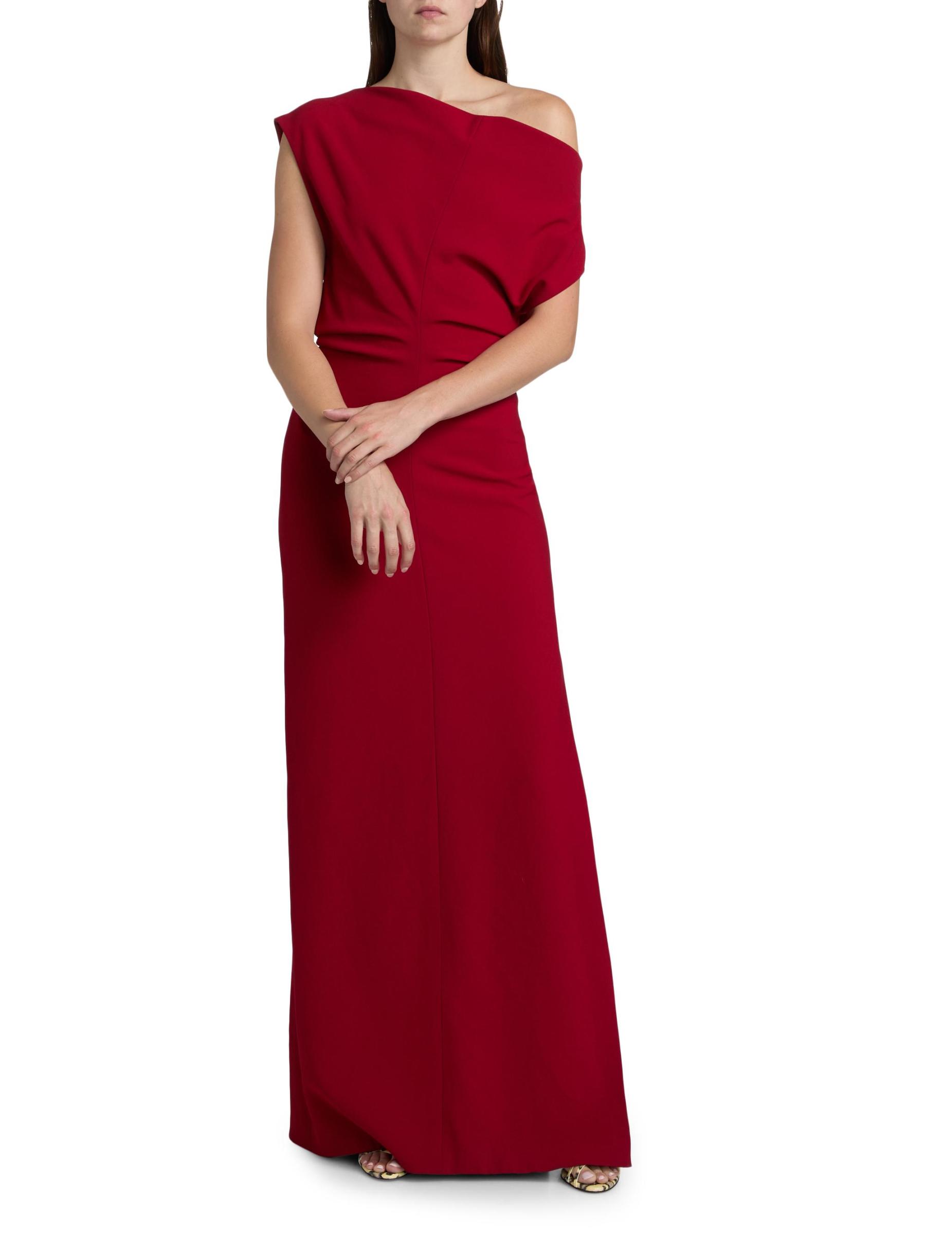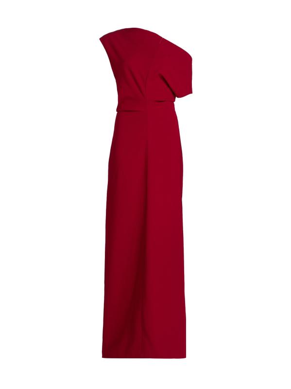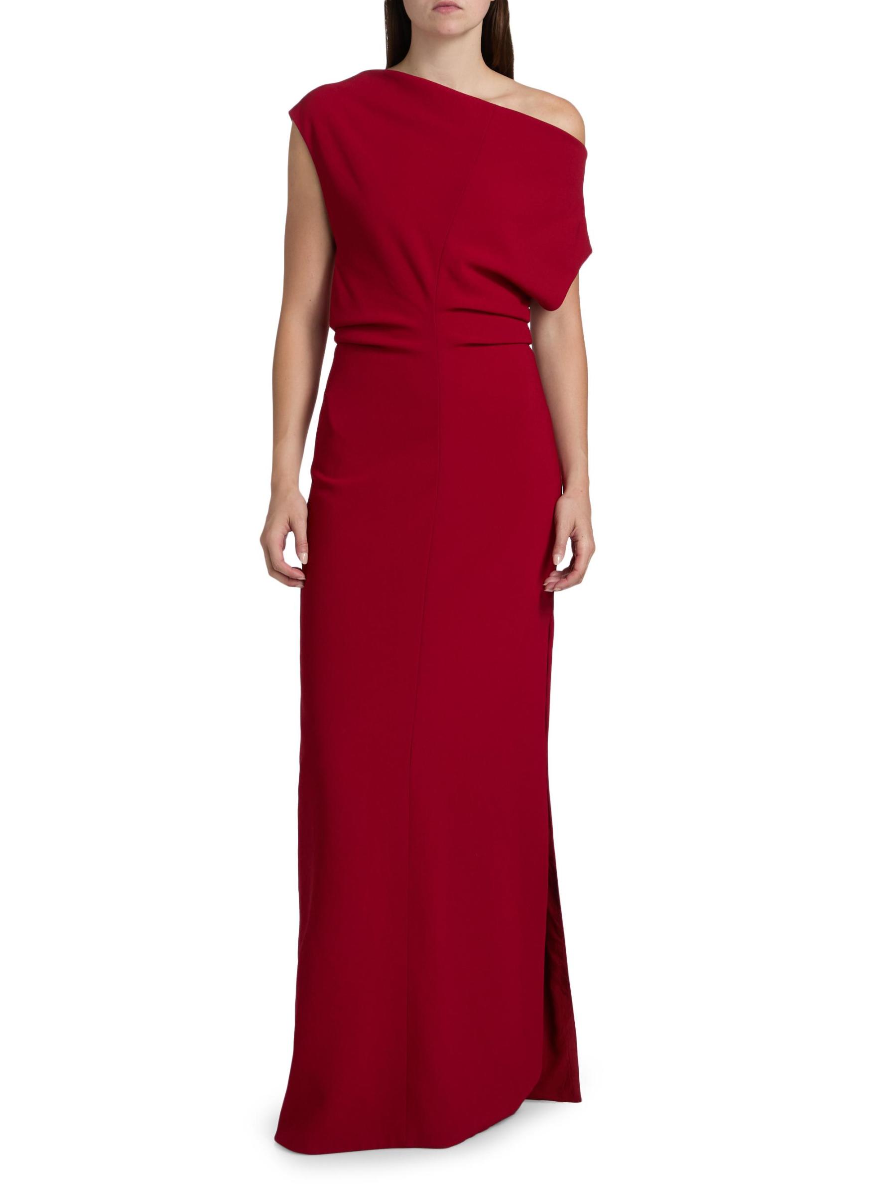 This Rosina double crepe gown from Proenza Schouler features a column silhouette with an asymmetric neck and a side slit.