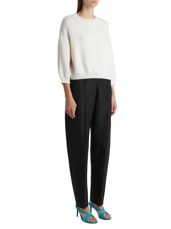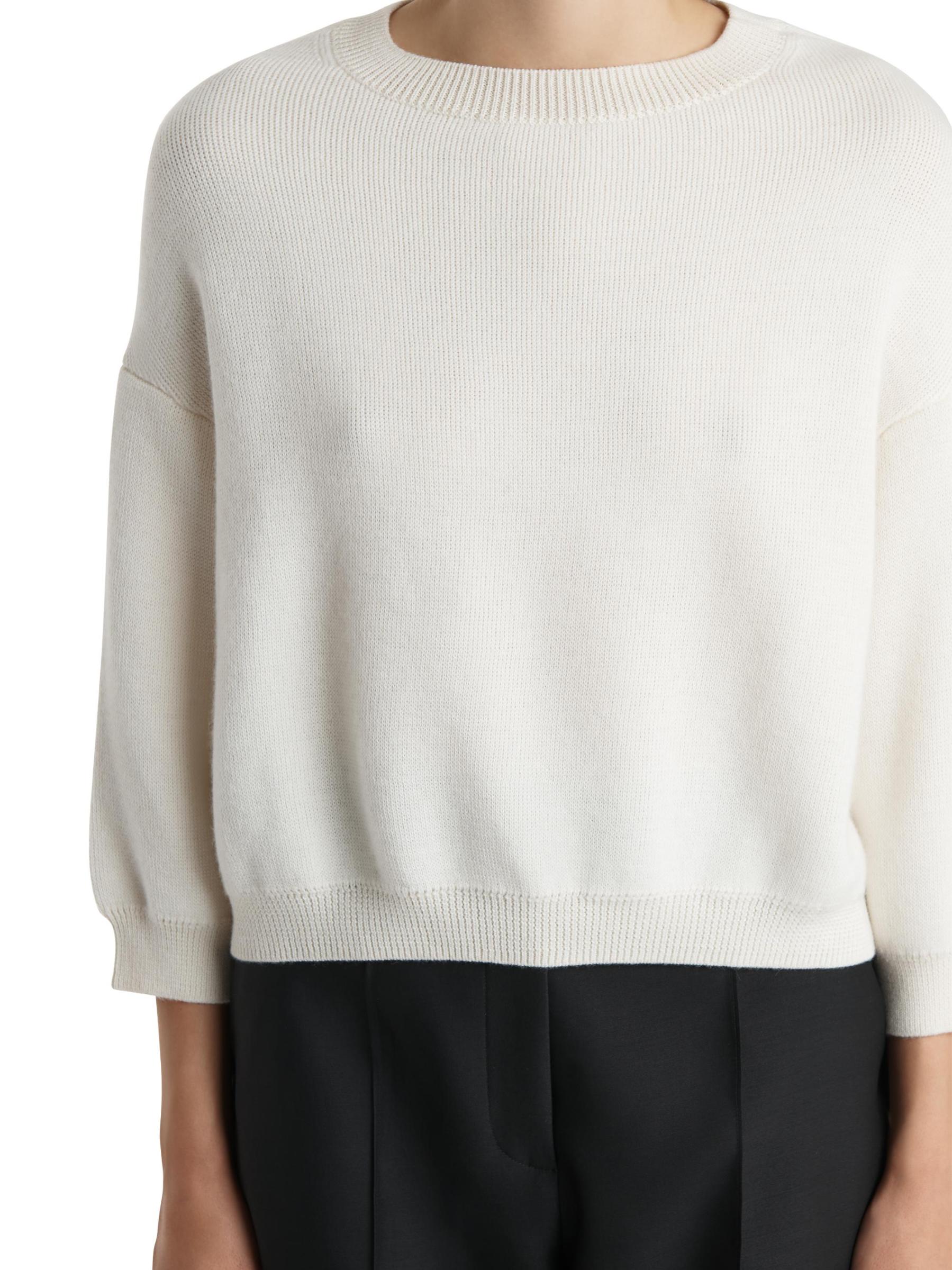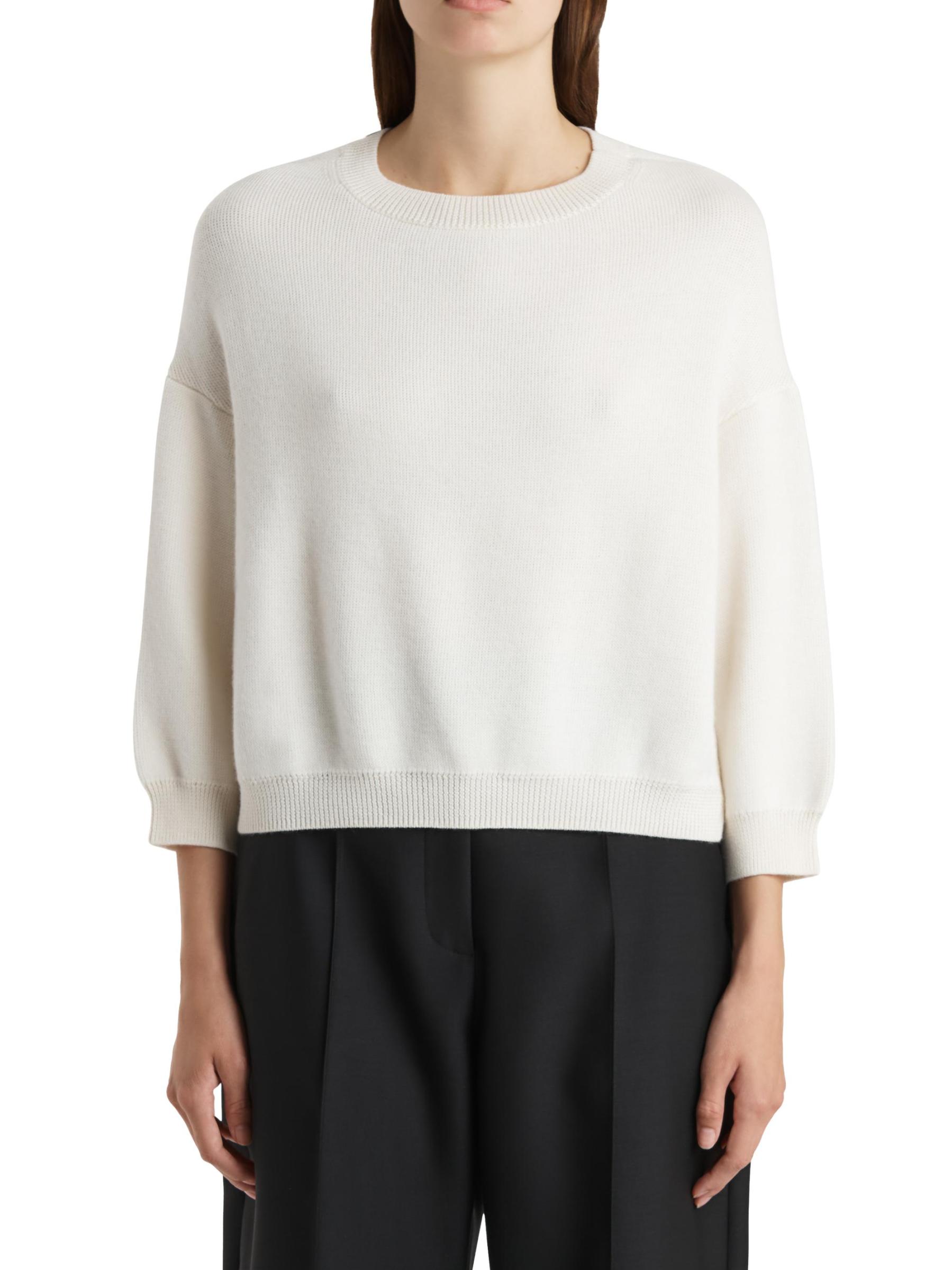 Crafted of cashmere and mohair, the Sabina sweater from Khaite is styled with a crewneck and dropped shoulder seams. This style is cut for a boxy fit and features rib-knit trim.Crewneck Drop shoulders Three-quarter length sleeves Rib-knit trim Pulls over 70% cashmere/30% mohair Dry clean Imported
