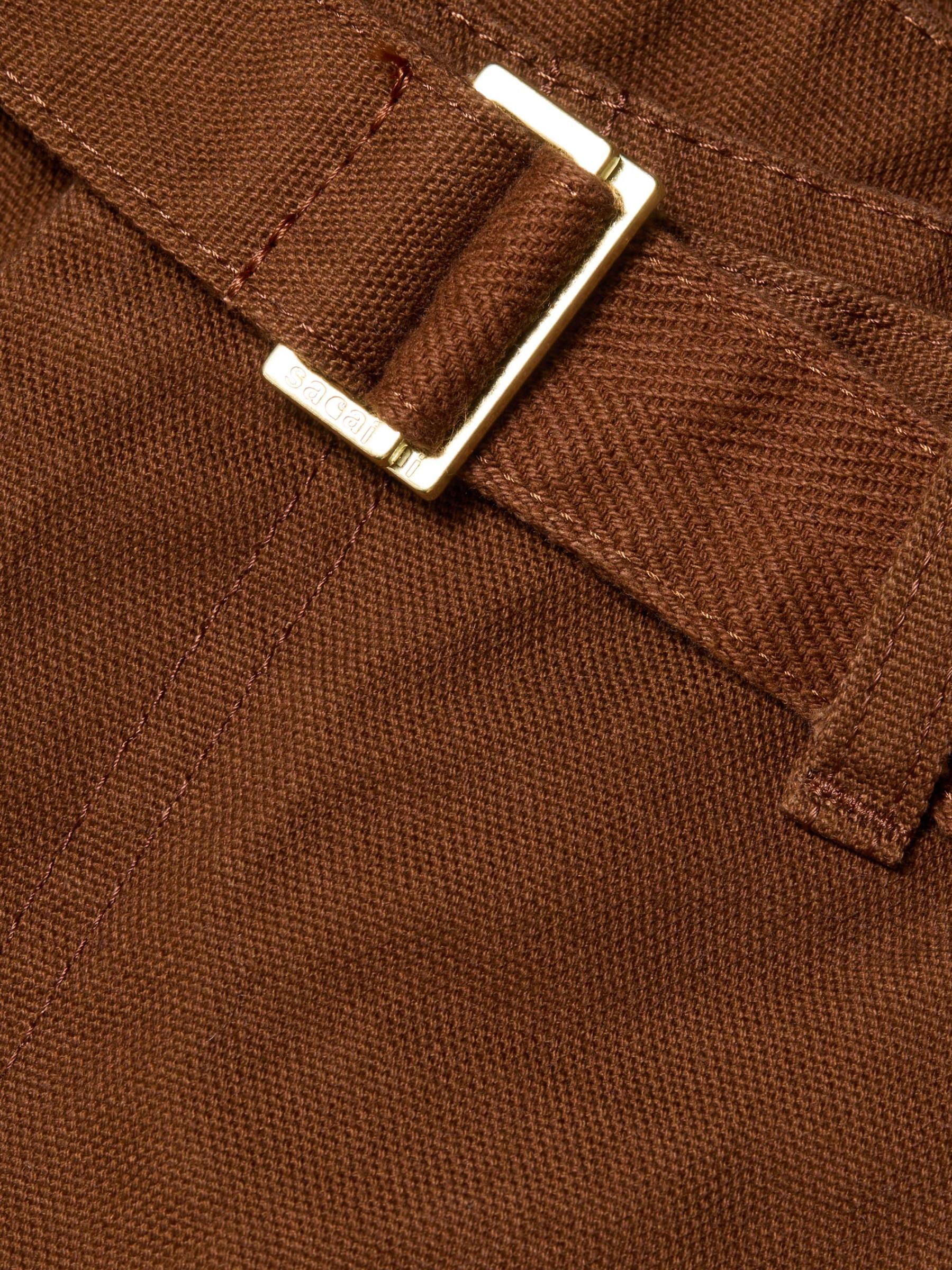 Sacai and Carhartt WIP's third collaborative capsule fuses their core essences of modification and resilience through signature top-stitched puffer jackets and canvas workwear. Each style is finished with a co-branded woven label. Crafted of cotton, these Duck pants feature a cargo-inspired silhouette with various patch pockets and a woven belt.Belted Side seam pockets Side patch and back pockets Zip fly, button closure 100% Cotton Dry clean Made in Japan