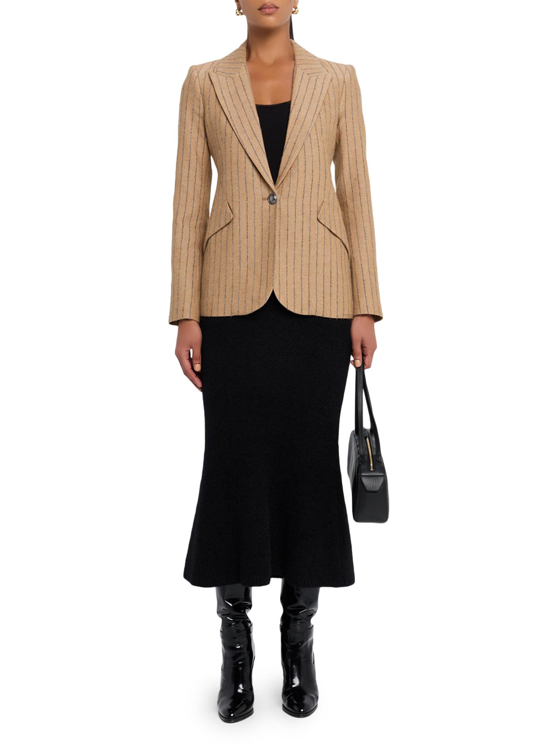 The Salem midi-skirt from L'Agence is knit to a softly structured silhouette with a gentle flare at the hem for an added sense of movement.