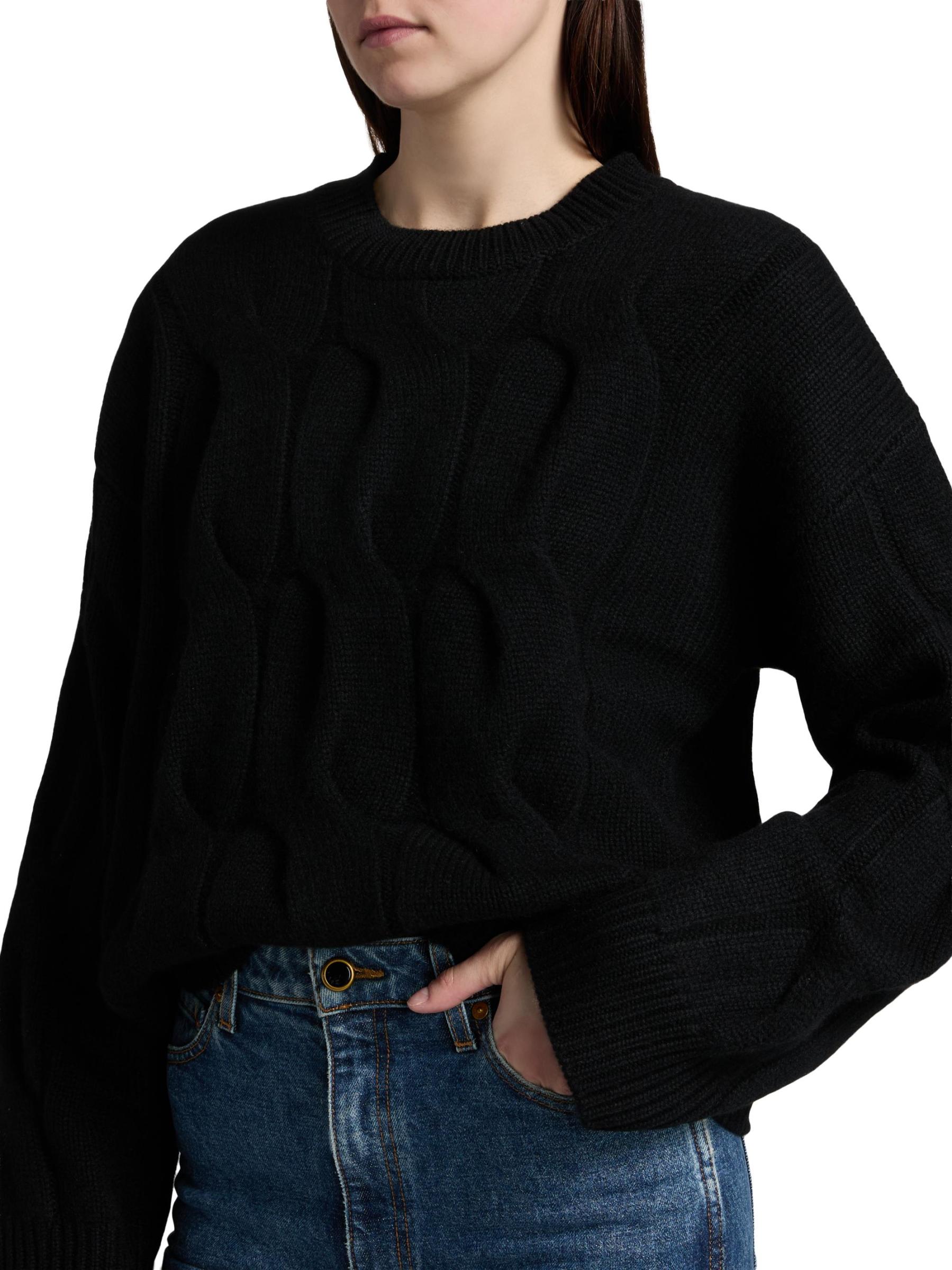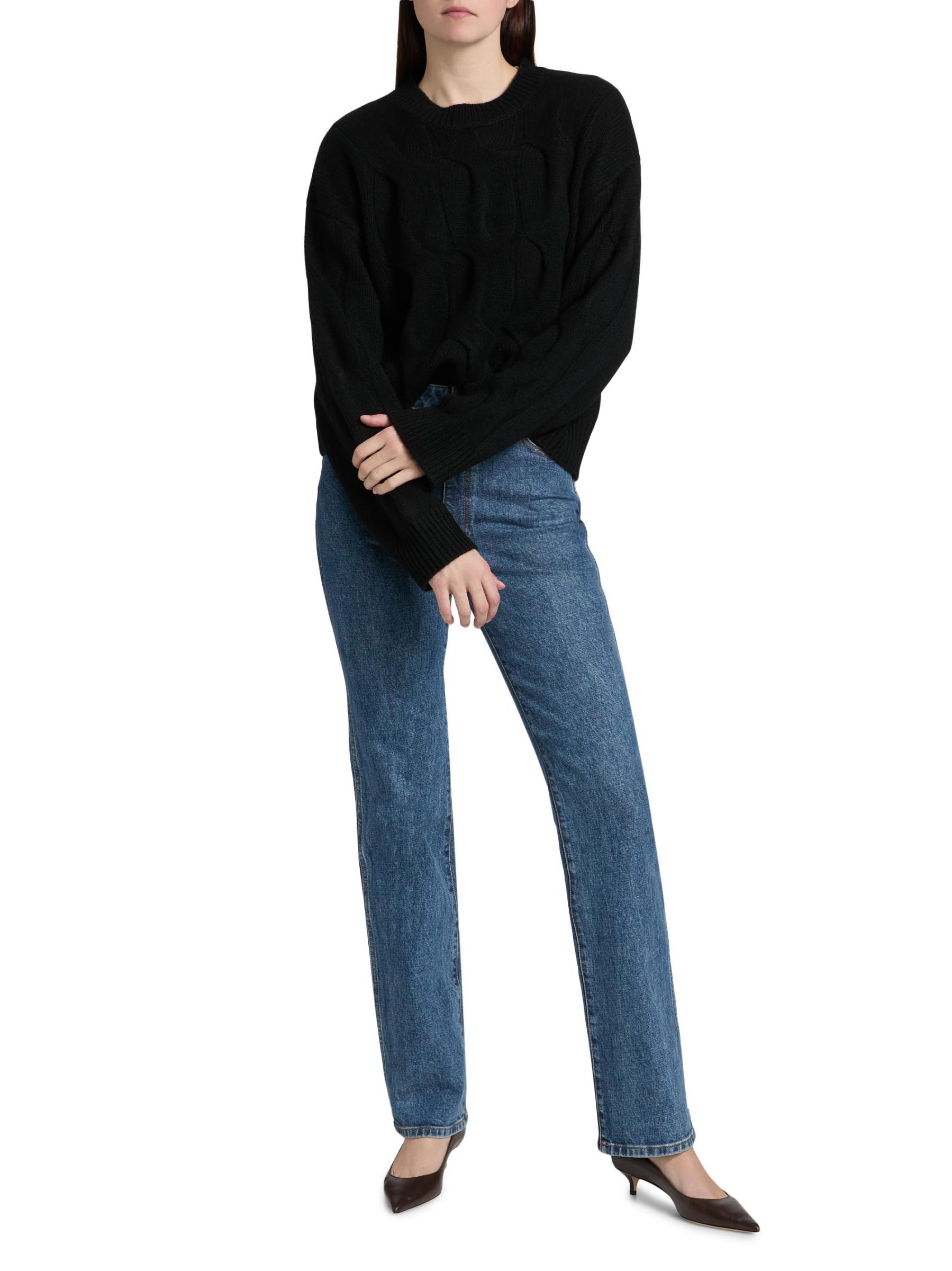 Lisa Yang's Sammie sweater showcases an exaggerated cable-knit detail, ribbed trim, and a timeless crewneck. Crafted of luxurious organic cashmere, this piece is styled with relaxed dropped shoulders.