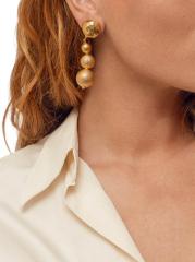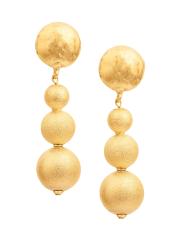 The 22K-gold-plated Sand Bubble drop earrings from Sylvia Toledano showcase a trio of brushed beads anchored by a hammered, domed stud.22K gold-plated brass Clip on Imported