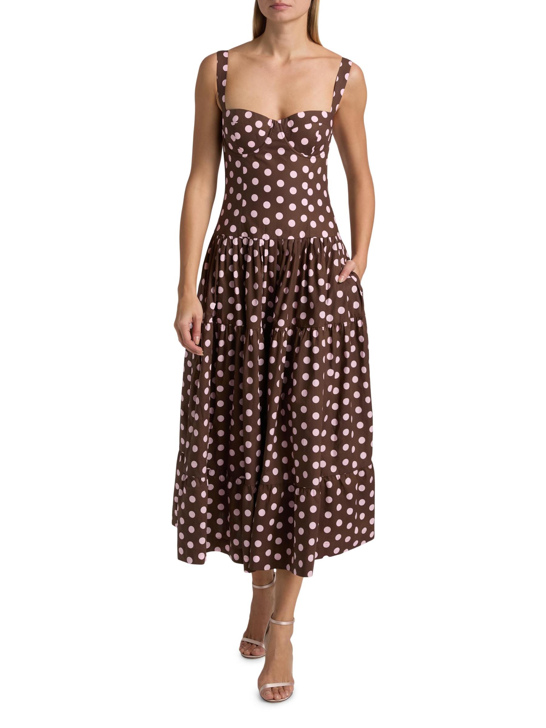 Crafted of cotton poplin, the Santiago midi-dress from Cara Cara highlights a sweetheart neck and drop waist.