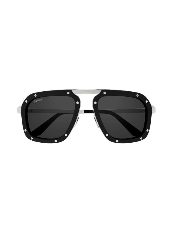 From the Santos Evolution Collection. These sunglasses from Cartier feature a pilot silhouette with studs and platinum-plated metal temples.