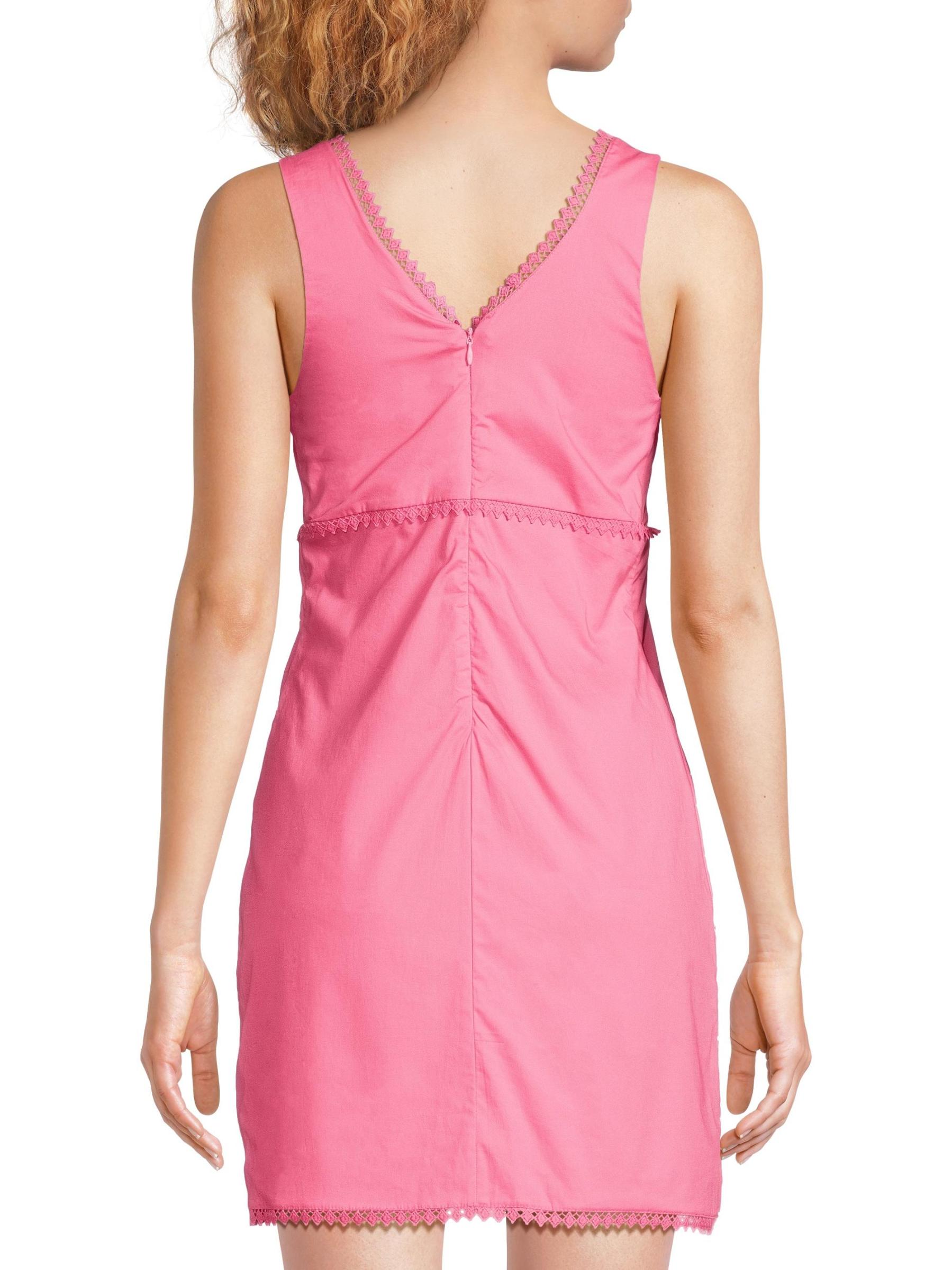 Crafted of cotton, the Sarita minidress from Peixoto features lace detailing.Plunging V-neck Sleeveless Concealed back zip closure 100% Cotton Hand wash Imported