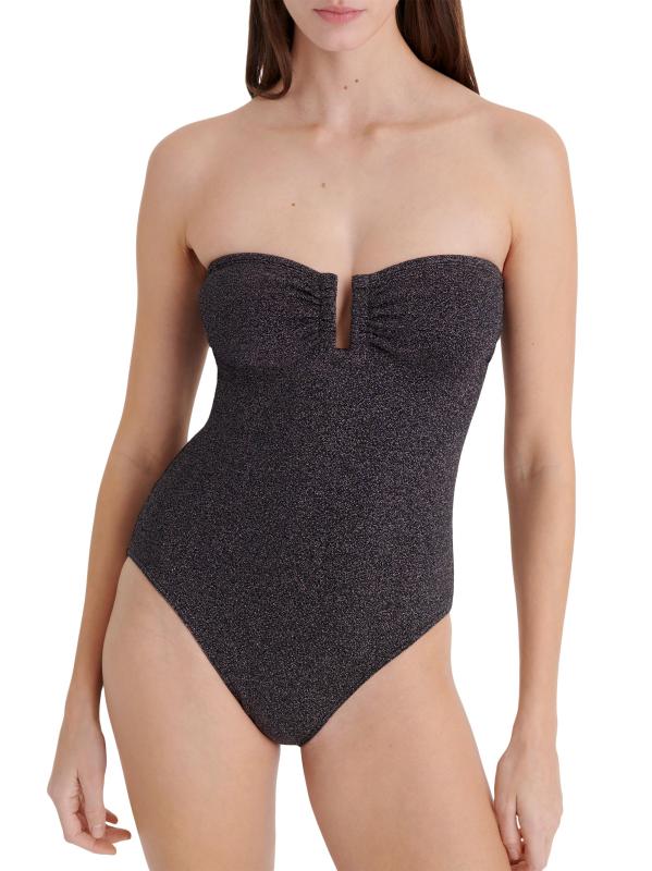 Made in France, ERES' Scintillant bustier one-piece swimsuit is designed with a glittered stretch fabric and a sweetheart neck.Strapless Pulls on 74% polyamide/22% metallic polyester/4% spandex Machine wash Made in France