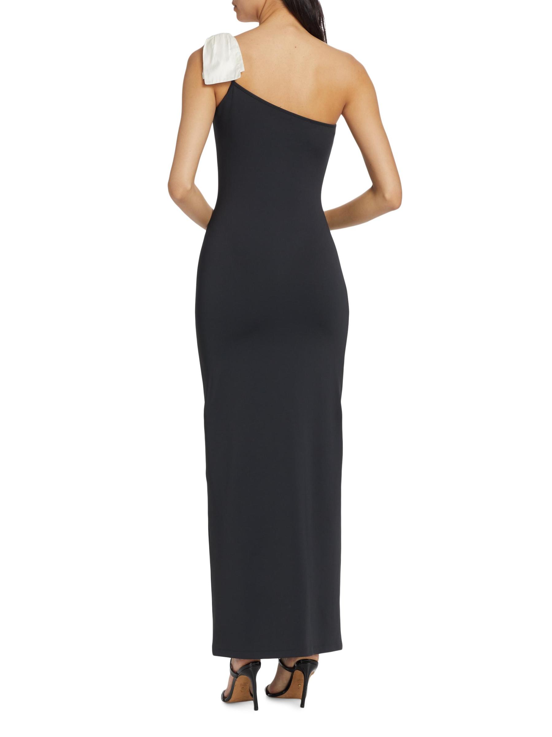 Scuba Ribbon One-Shoulder Maxi Dress