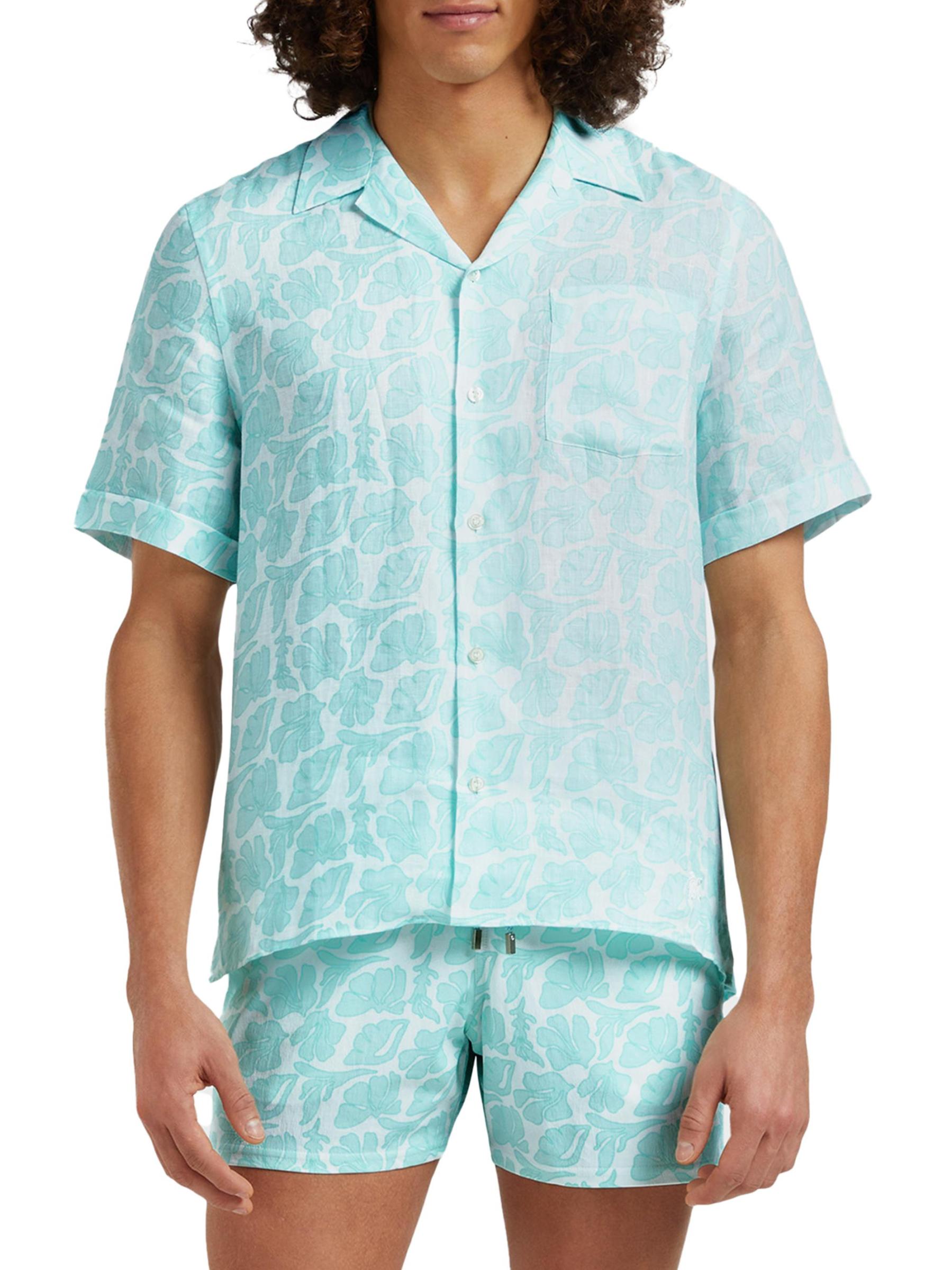 This bowling short-sleeve shirt from Vilebrequin is crafted of linen and splashed with a west coast-inspired seashells print.