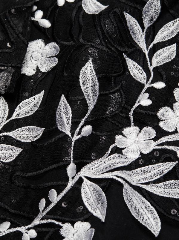 Sequined Floral- Embroidered Cocktail Minidress