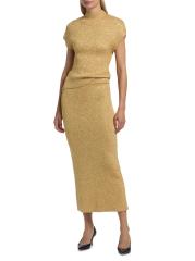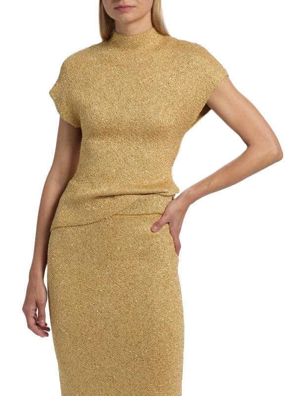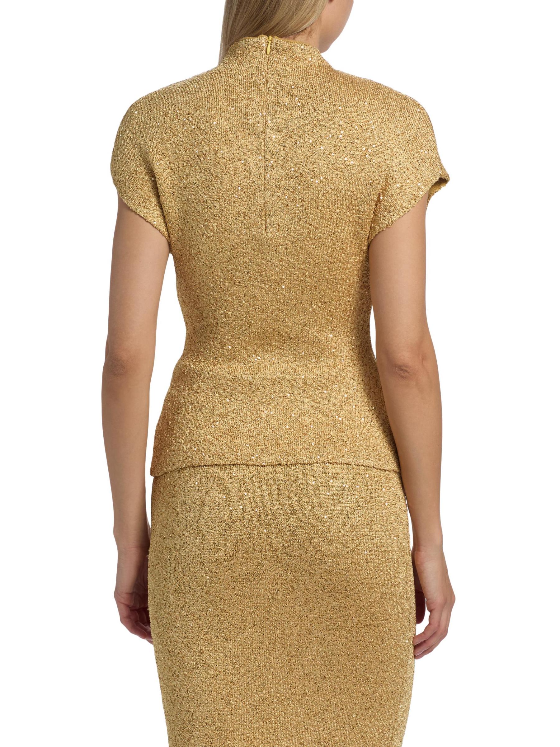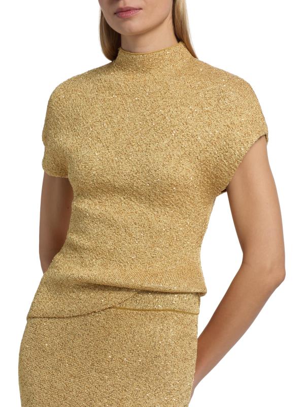 Lela Rose' mock turtleneck top features short sleeves and a sequined knit, adding a touch of shine.