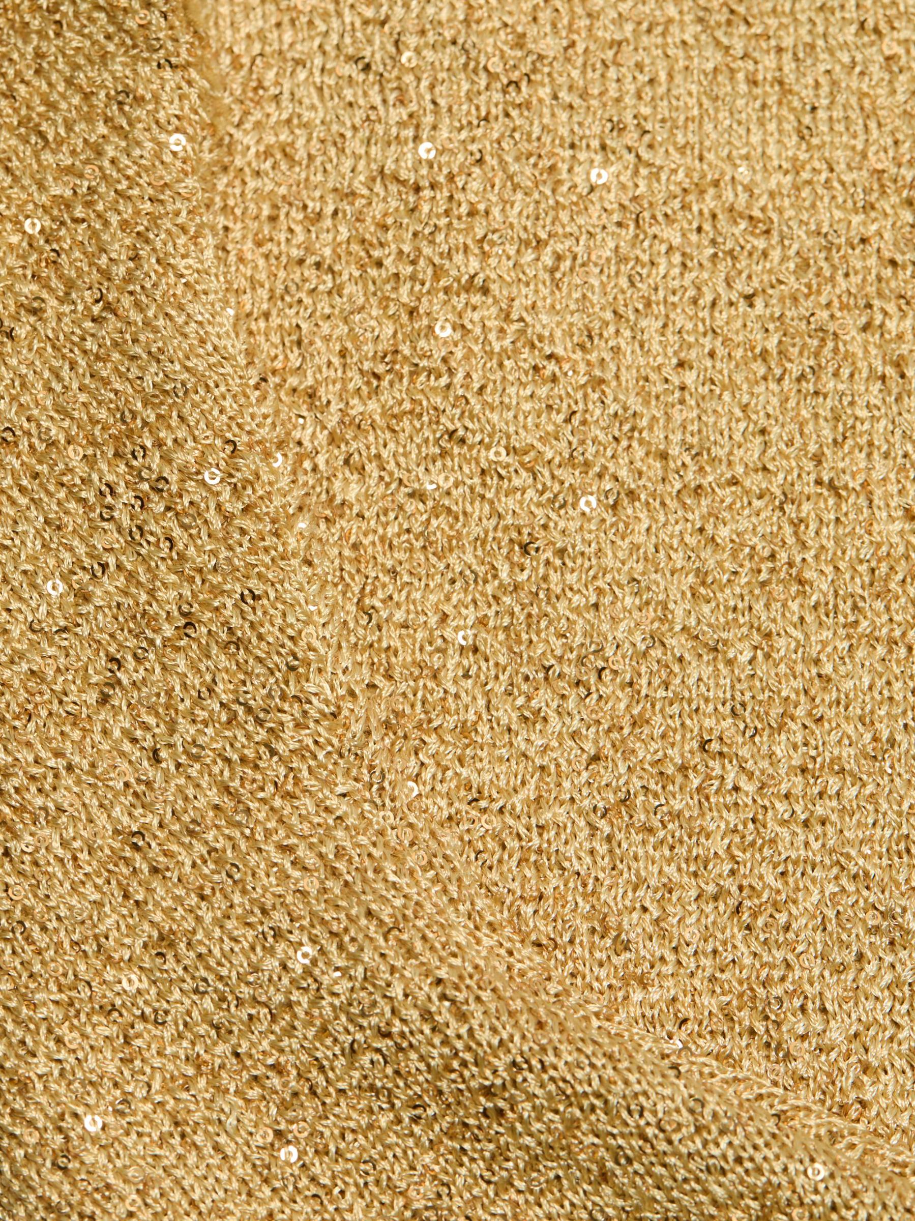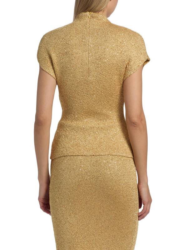 Lela Rose' mock turtleneck top features short sleeves and a sequined knit, adding a touch of shine.Mock turtleneck Short sleeves Concealed back zip closure 72% viscose/28% polyester Hand wash Imported