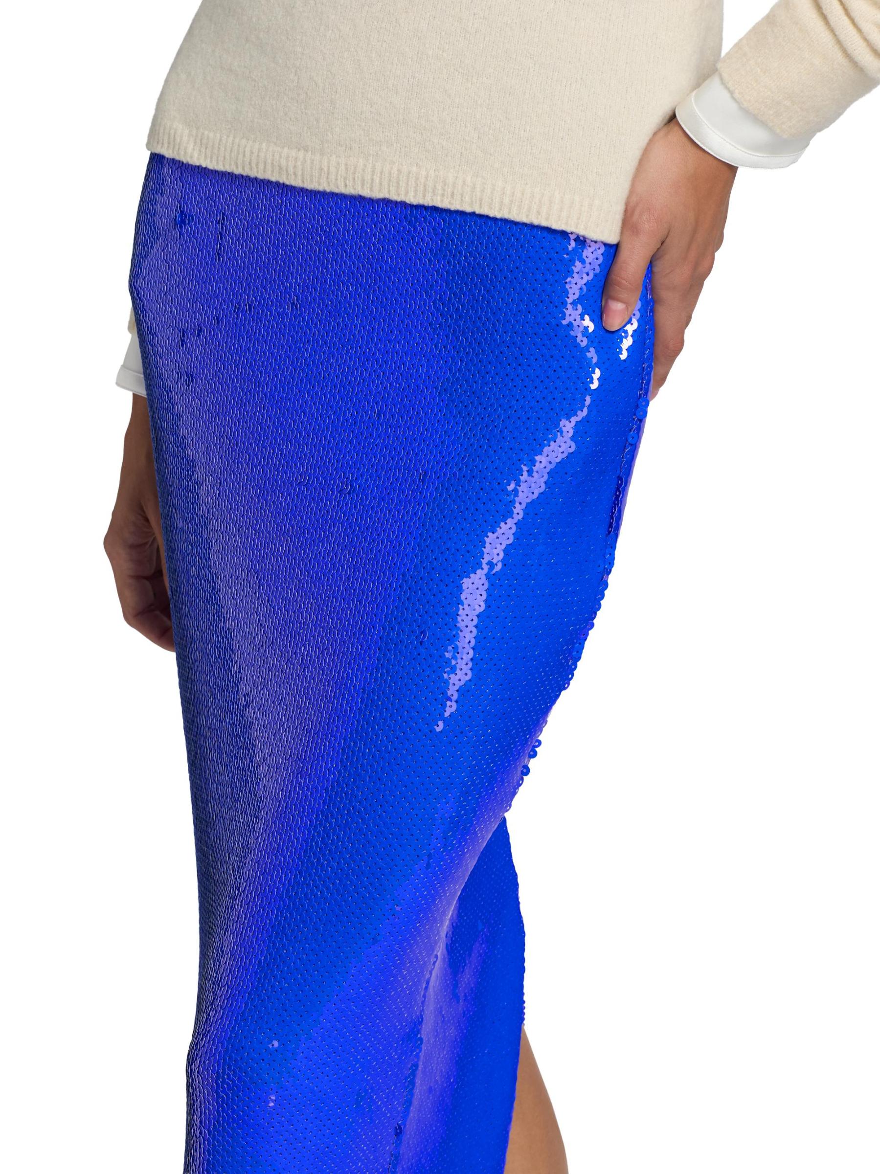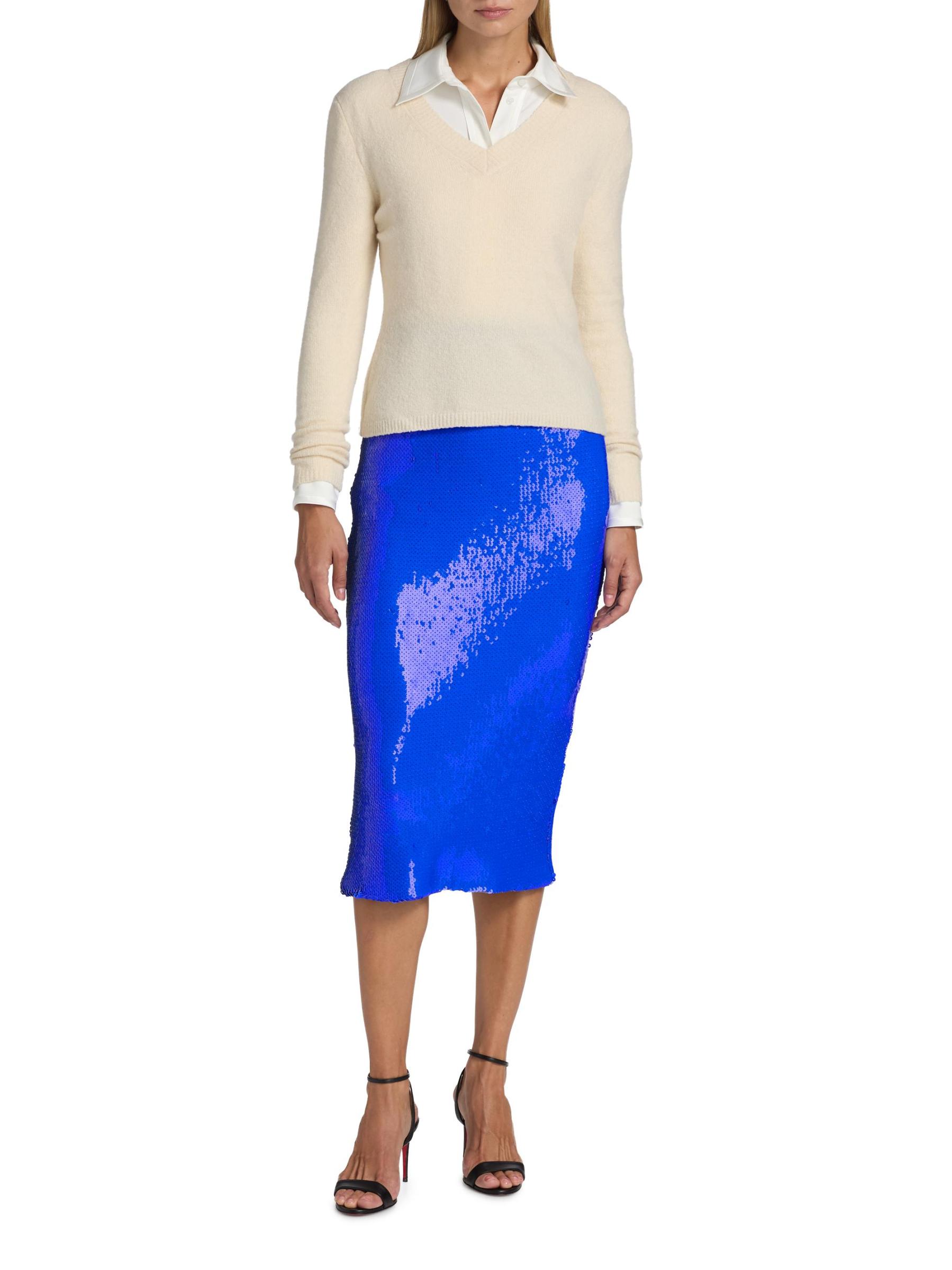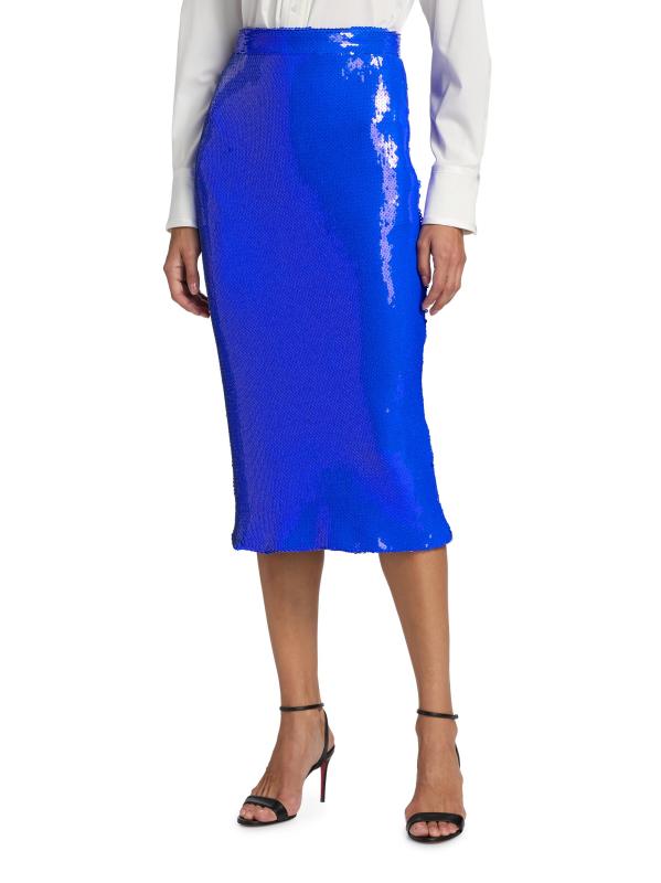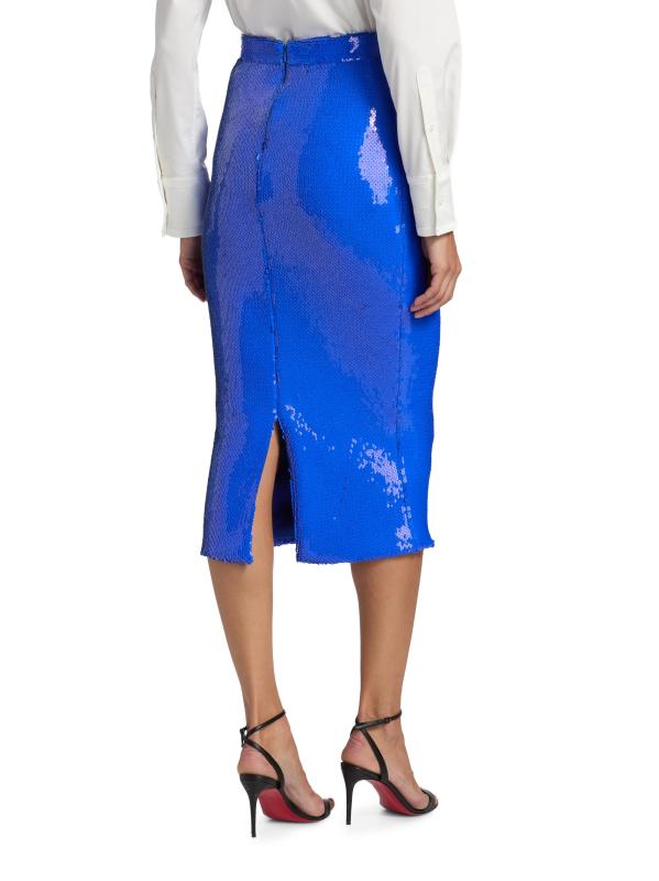 Sergio Hudson’s midi-length pencil skirt is designed with allover sequin embellishing for a shimmering finish.