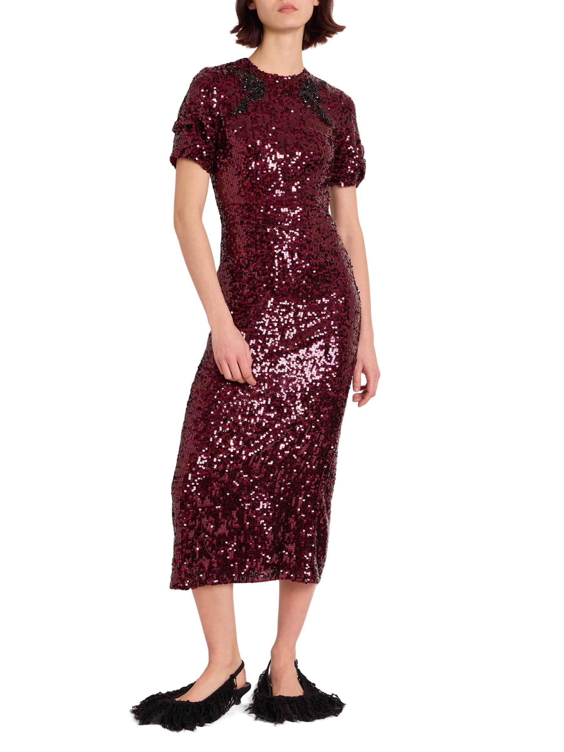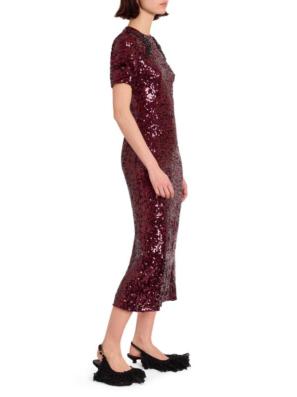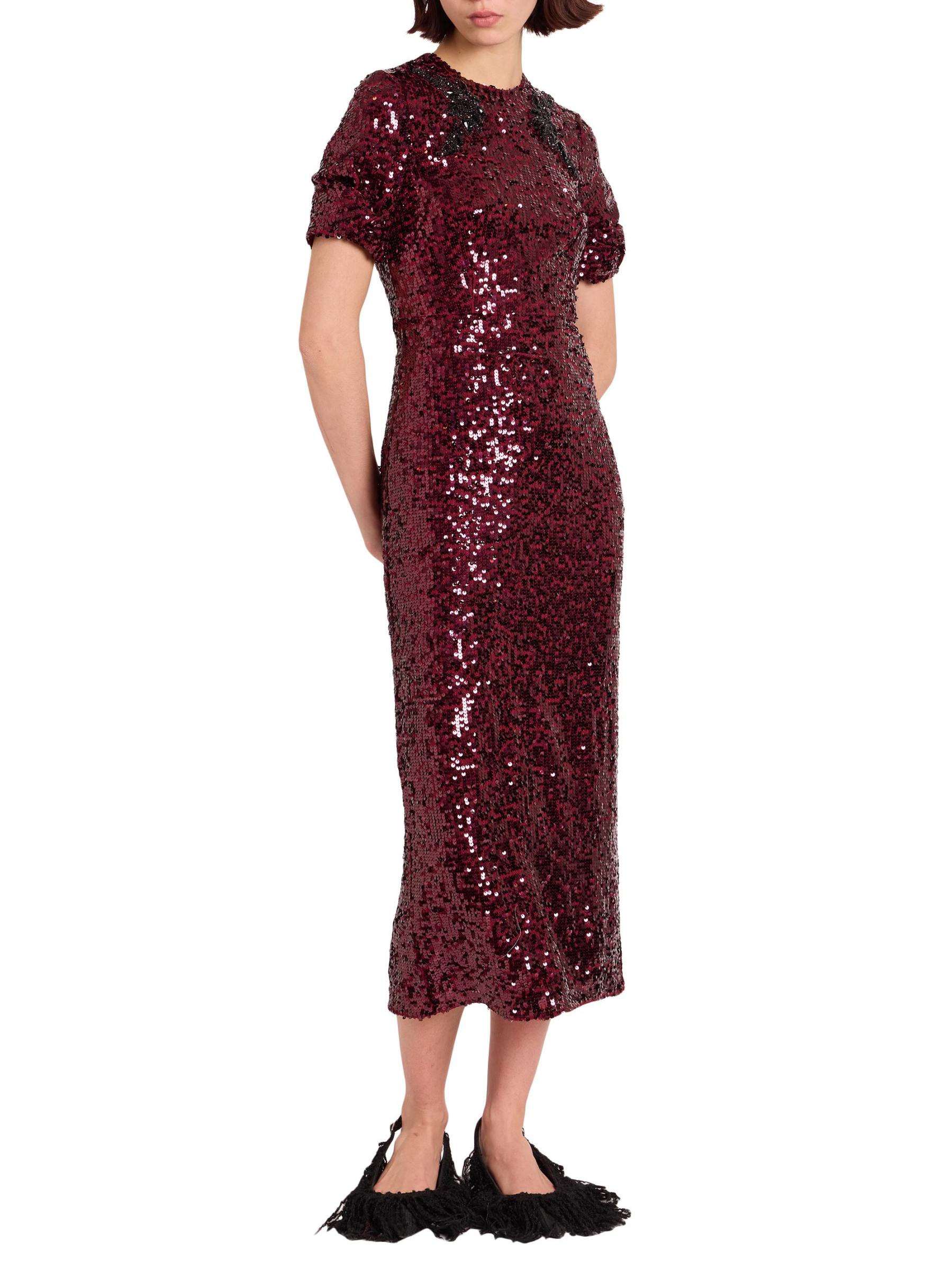 Erdem's fitted short-sleeve cocktail dress enhances the sleek sheath silhouette with shimmering sequins and a mirrored embellished appliqué that frames the crew neckline.Crewneck Short sleeves Concealed back zip closure 100% polyester Combo: 100% polyethylene terephthalate Lining: 75% acetate/25% silk Dry clean Imported