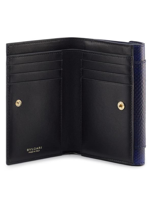 From the Serpenti Collection. This Serpenti Forever pochette from BVLGARI is crafted of snakeskin-embossed leather and features the brand's signature Serpenti motif.Interior: one bill compartment, two slip pockets, and six card slots Flap with snap closure Leather Lining: leather Made in Italy