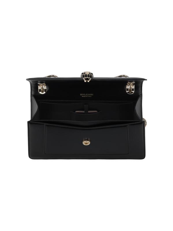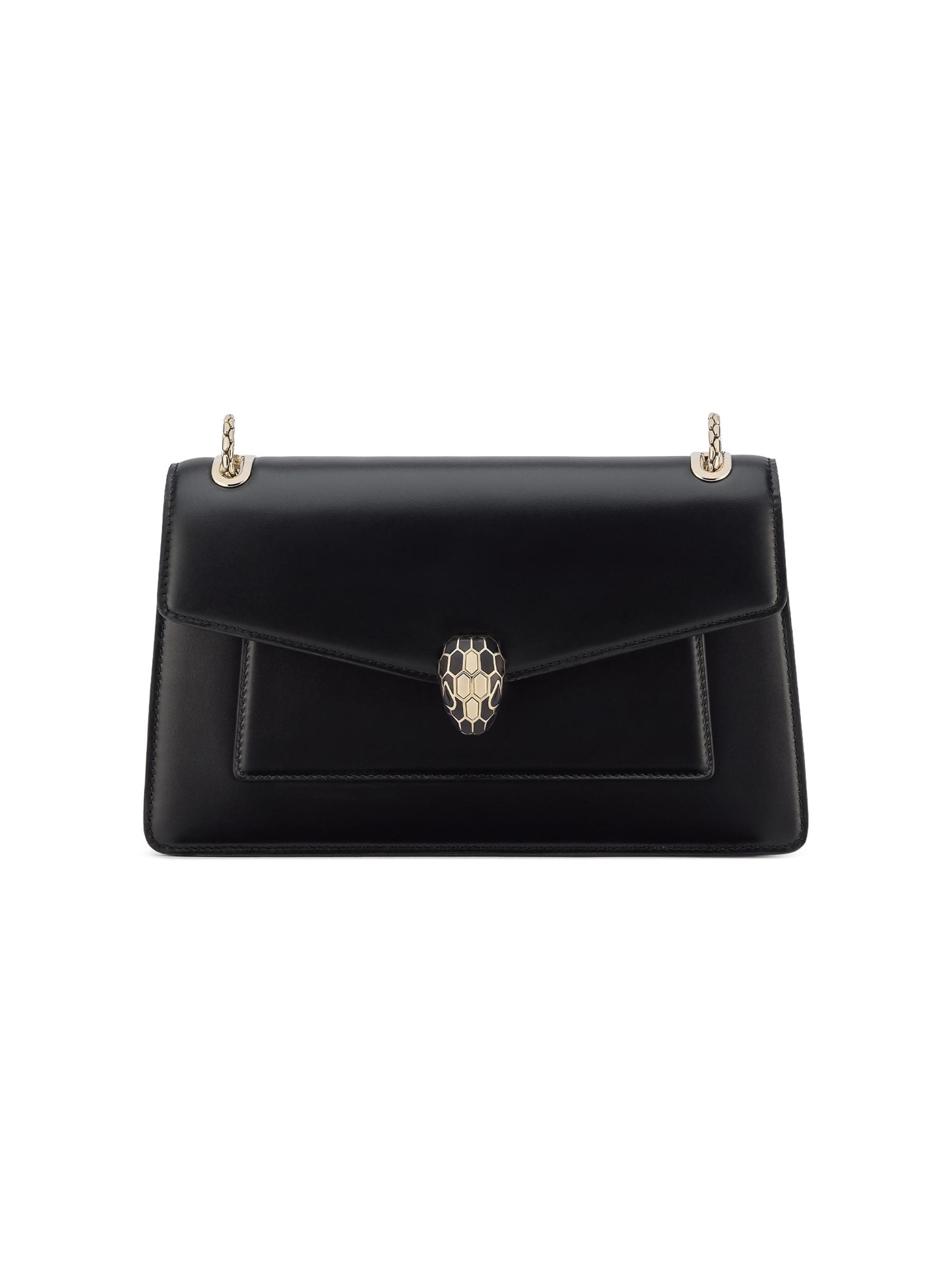 From the Serpenti Collection. This BVLGARI shoulder bag is crafted of leather and features a flap closure with the house's signature hardware.Shoulder strap Interior: one card slot and two slip pockets Leather Lining: leather Made in Italy