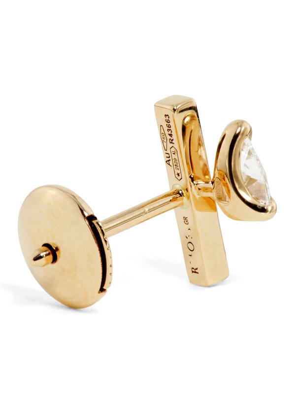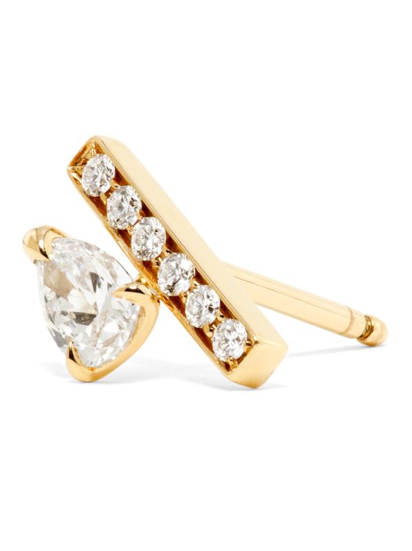 From the Serti Sur Vide Collection. Crafted of 18K rose gold, Repossi’s dainty stud earring pairs a sparkling pear-cut diamond with a diamond-encrusted bar.