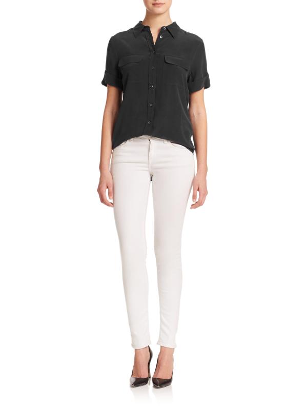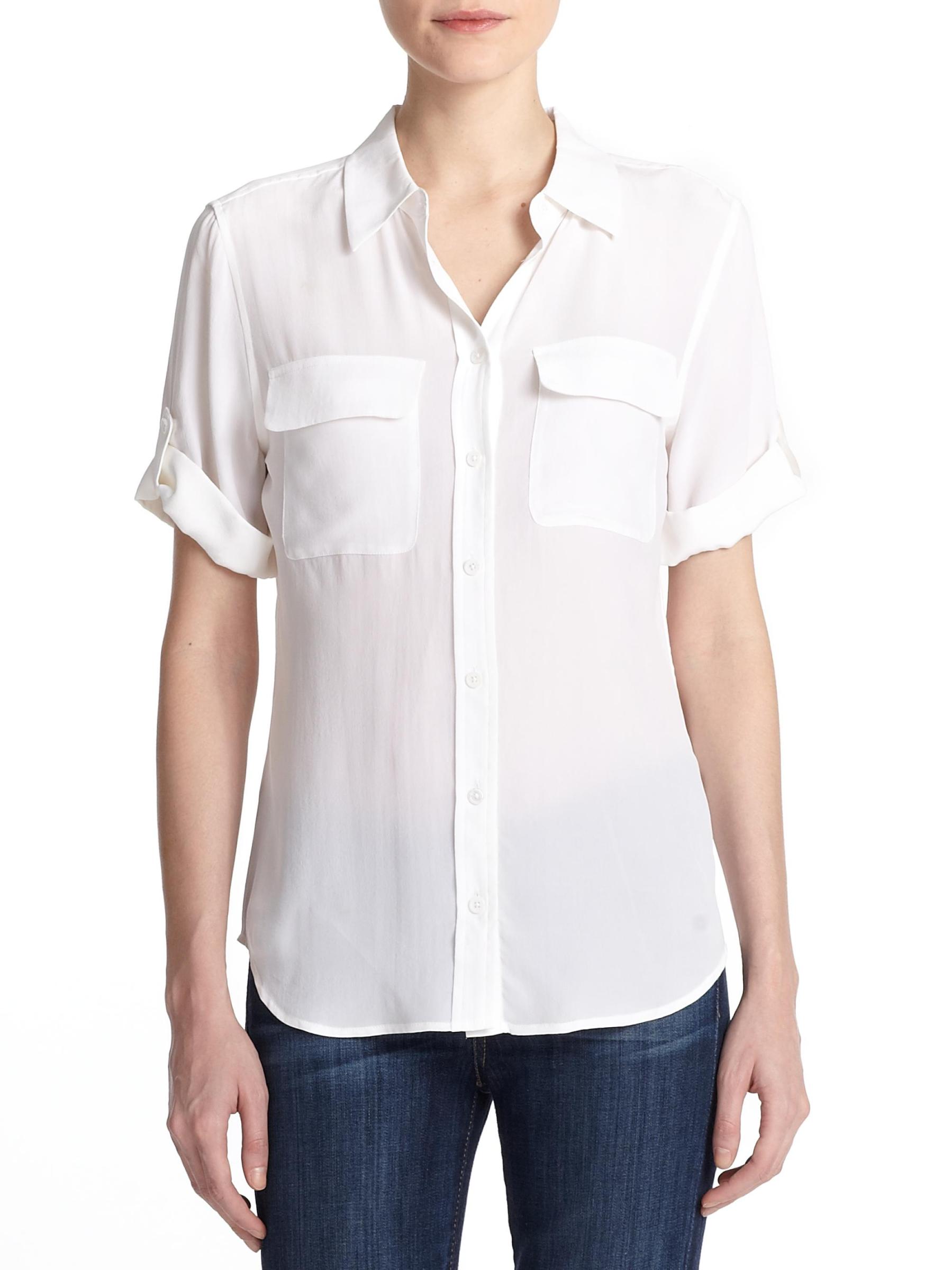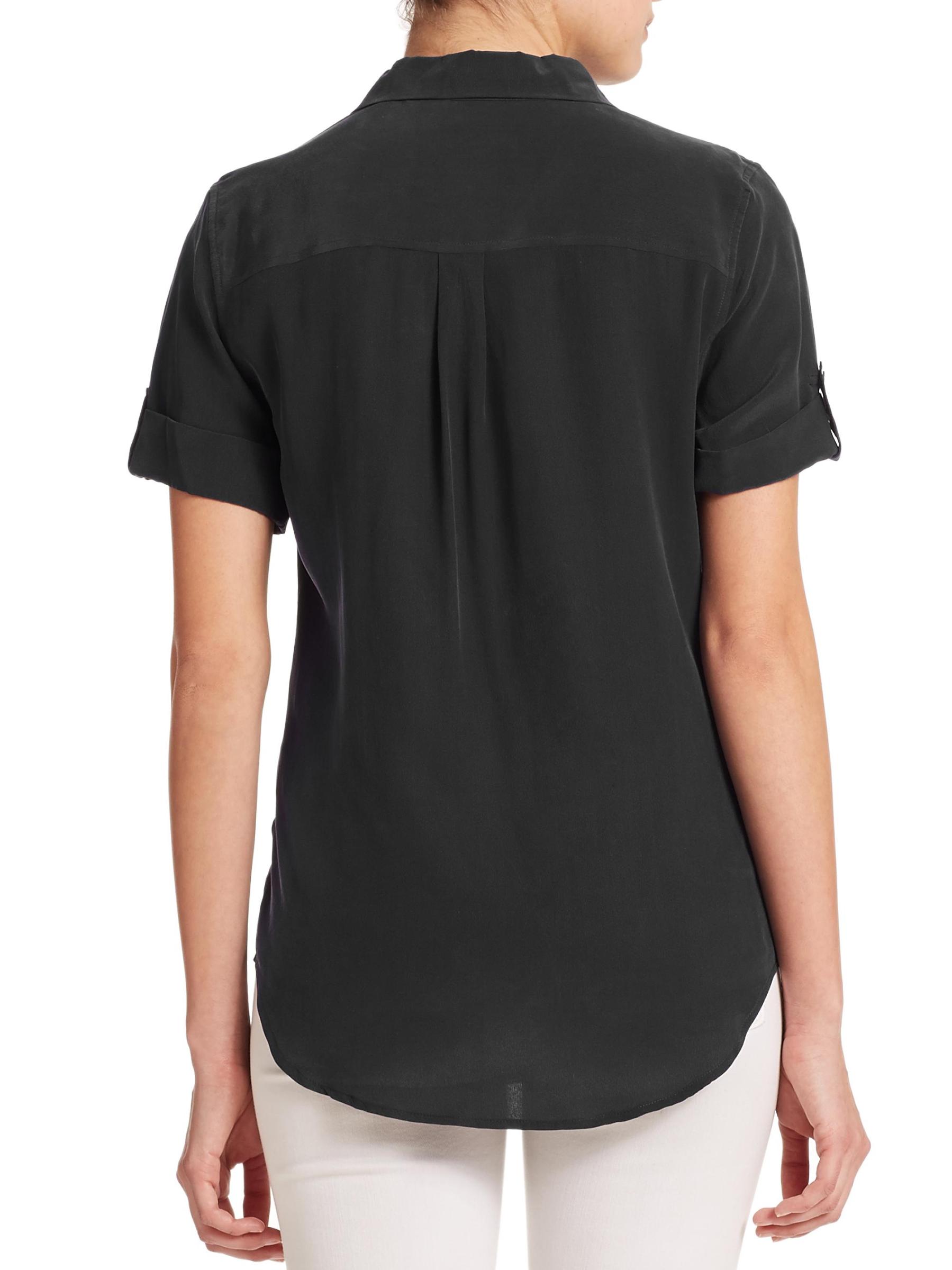 The utilitarian styling of rolled button-tab cuffs and front flap patch pockets adds an urban-chic sensibility to Equipment's classic silk shirt