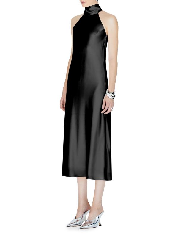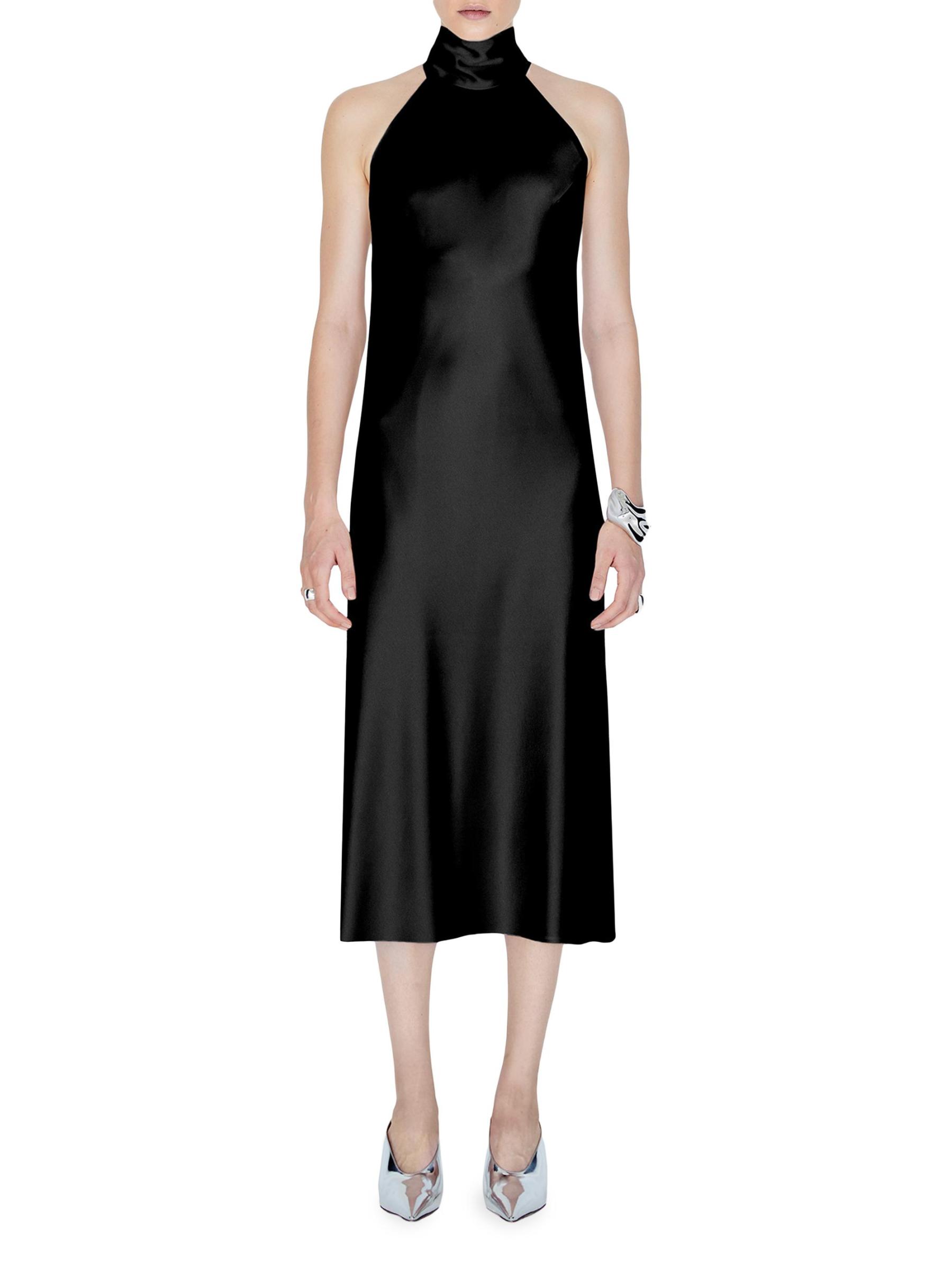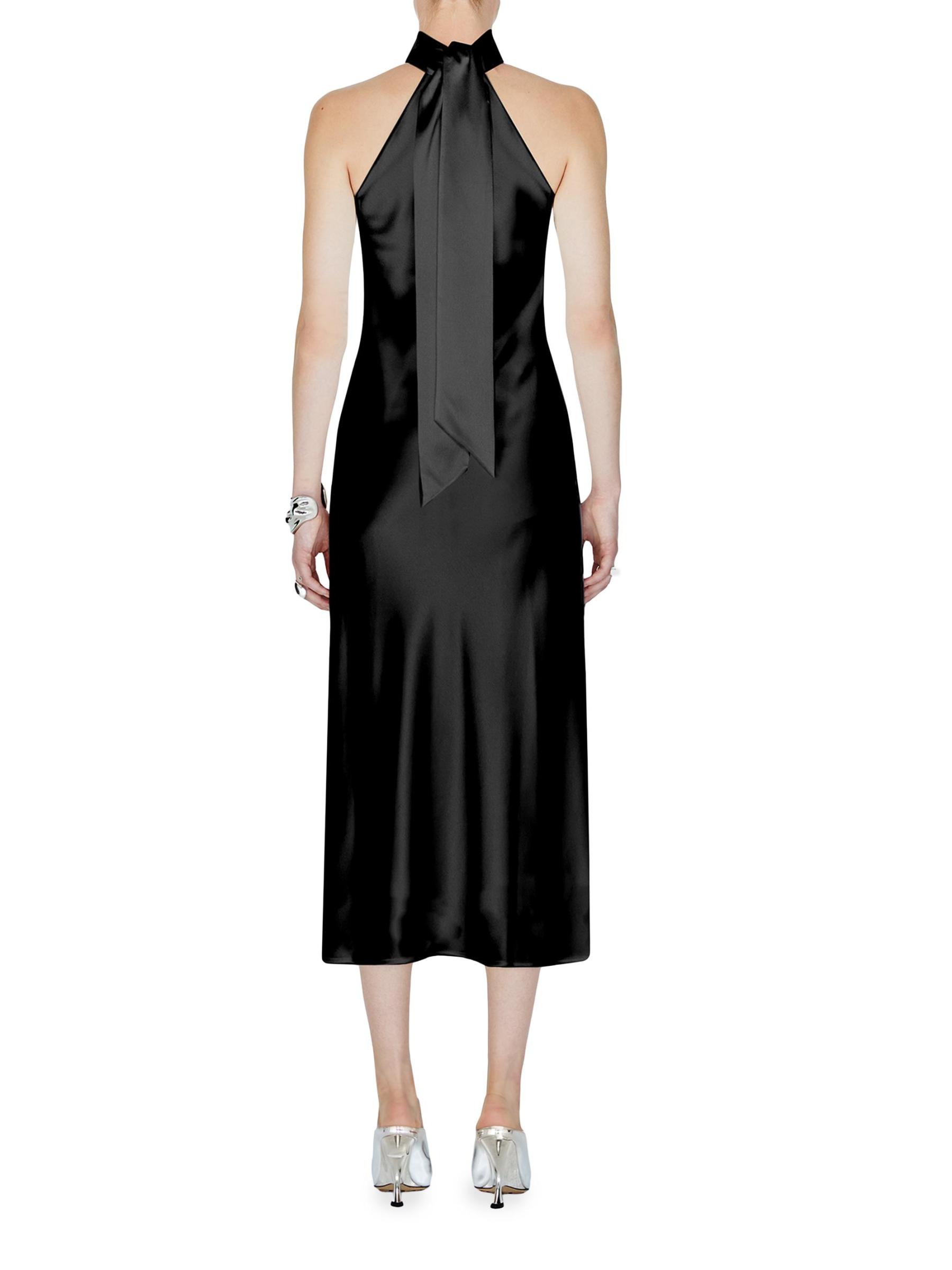 Crafted of luminous satin, Galvan’s Sienna dress features a halter neckline and a slim bias-cut silhouette.