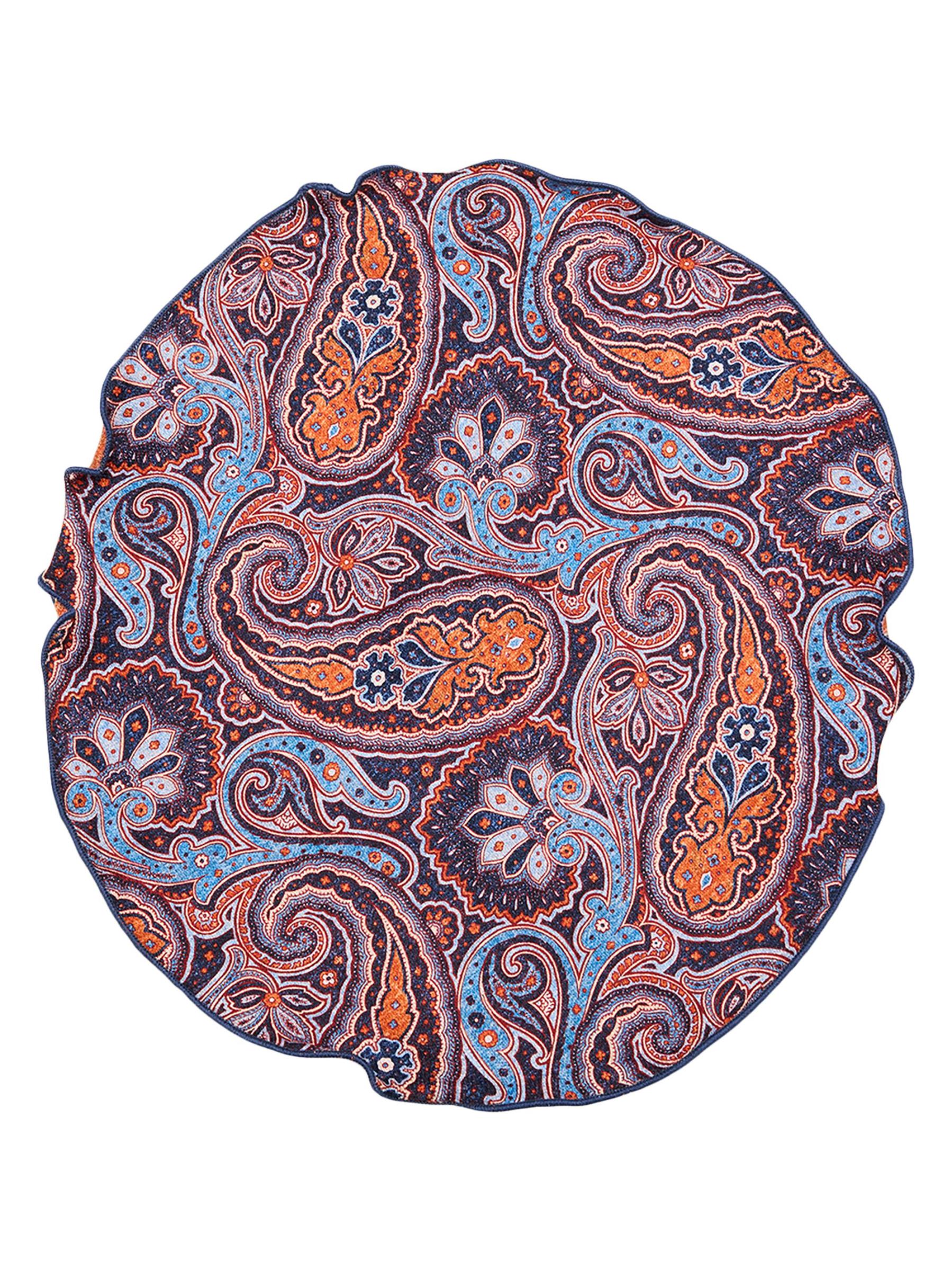 This reversible pocket circle from Edward Armah is crafted of silk with dual paisley patterns. The style is finished with a hand-rolled edge.