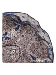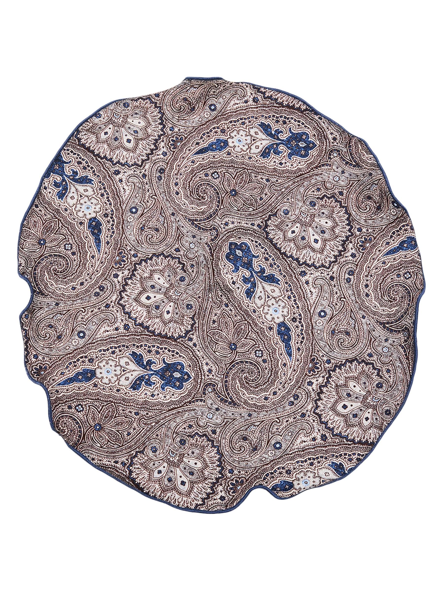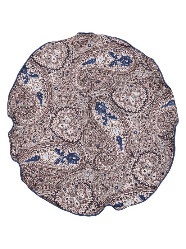 This reversible pocket circle from Edward Armah is crafted of silk with medallion and paisley patterns. The style is finished with a hand-rolled edge.