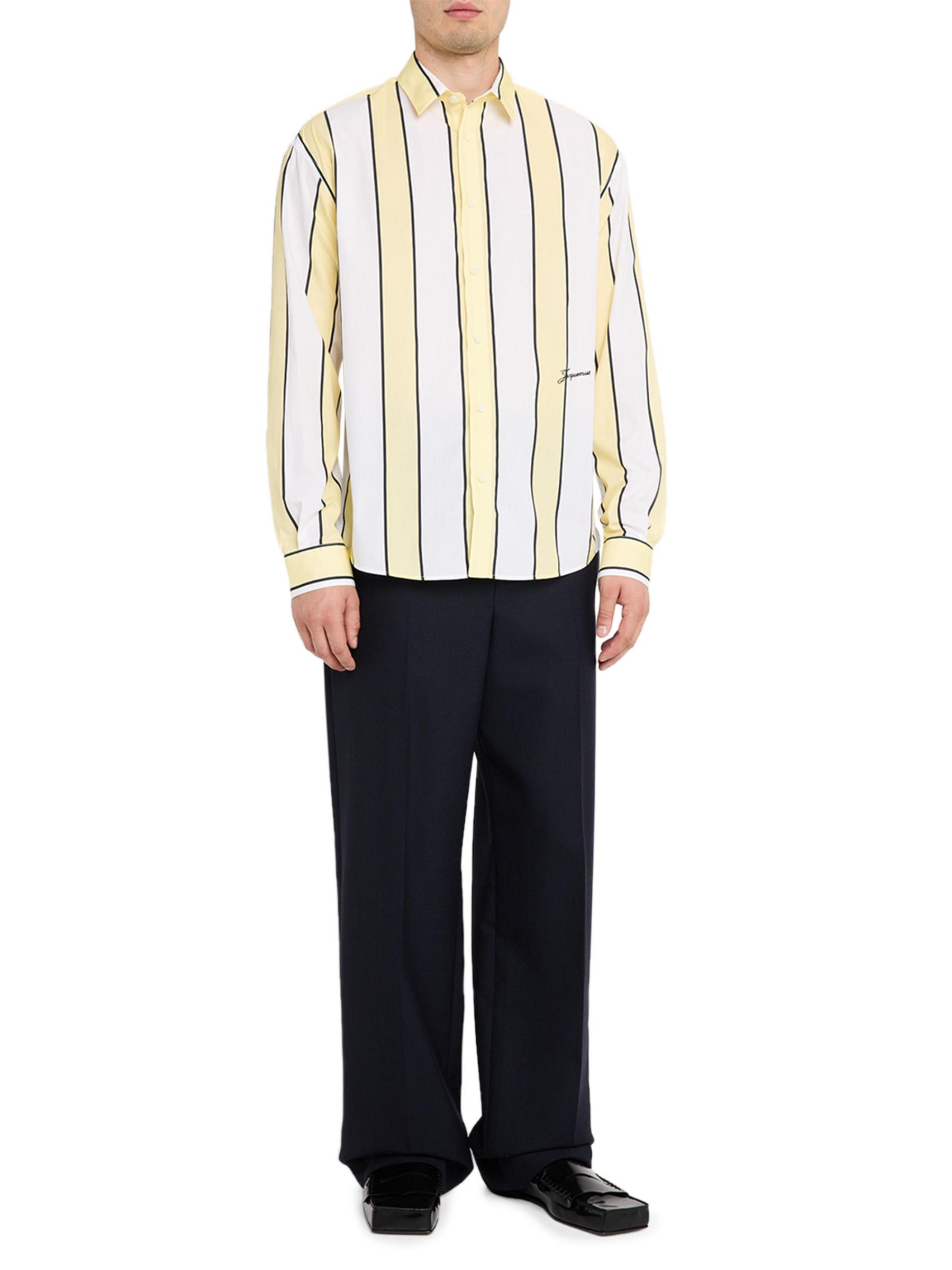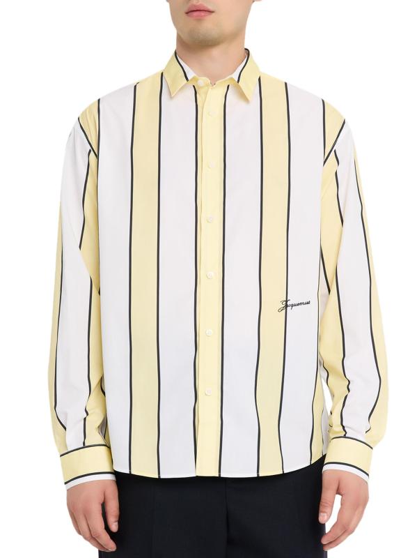 Inspired by vintage styles, the Simon sport shirt from Jacquemus is crafted of crisp cotton poplin with bold, wide stripes.Spread collar Long sleeves button cuffs Shirttail hem Button front closure 100% Cotton Dry clean Imported