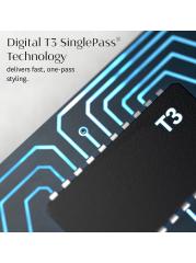 The T3 SinglePass Curl collection delivers long-lasting curls for every hair type and any style. Equipped with Digital T3 SinglePass® Technology, the SinglePass Curl 0.75” creates delicate, defined curls or enhances natural curls in one smooth pass. A smart microchip monitors five digital heat settings to deliver the optimal temperature for all hair types and textures, while Ceramic Heater Technology delivers even, consistent heat for lasting results with minimized heat exposure. Designed with a CeraGloss™ ceramic barrel, the T3 SinglePass Curl glides smoothly for frizz-free curls and waves that last.