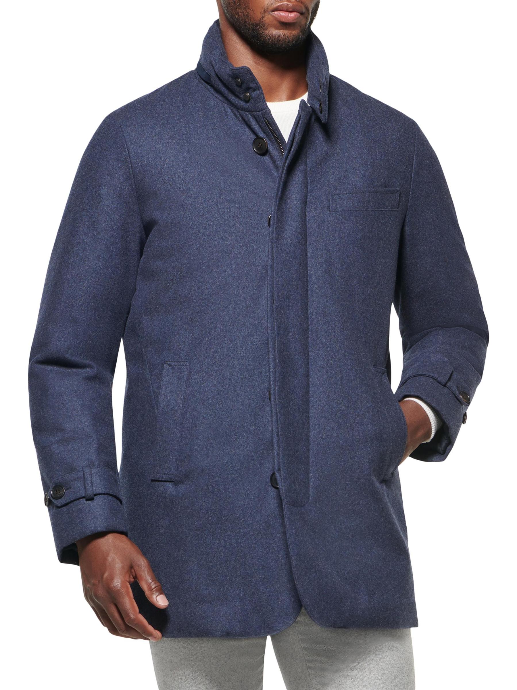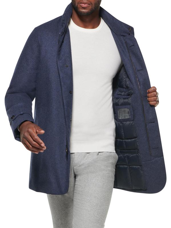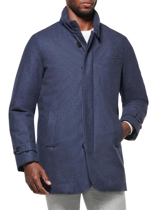 Norwegian Wool's Hooded Car Coat boasts a slim fit and fastens with both snap closures and a zipper closure at the front. This waterproof and windproofpiece is complete with slip pockets at the chest and on the sides.Hideaway hood Long sleeves Button-front
