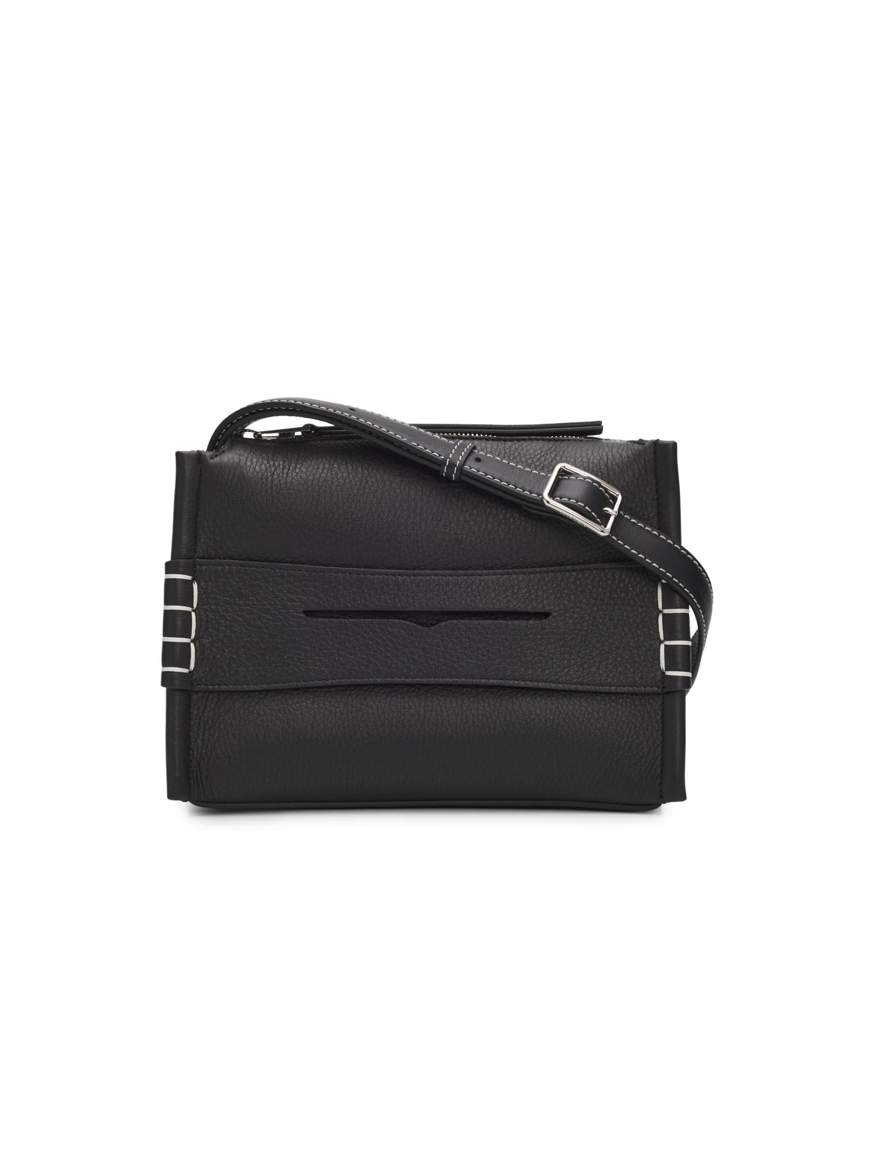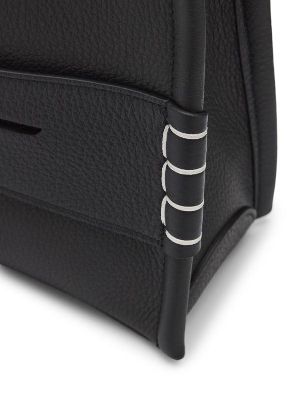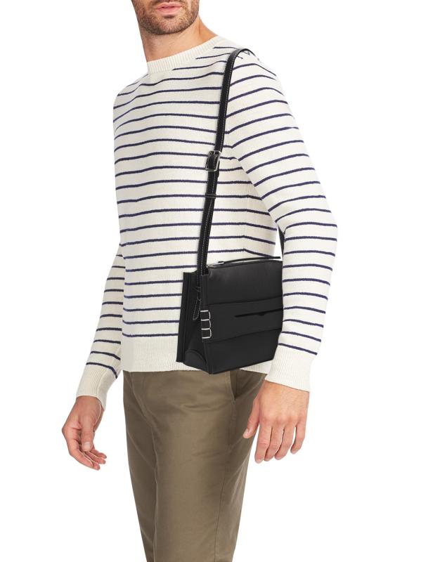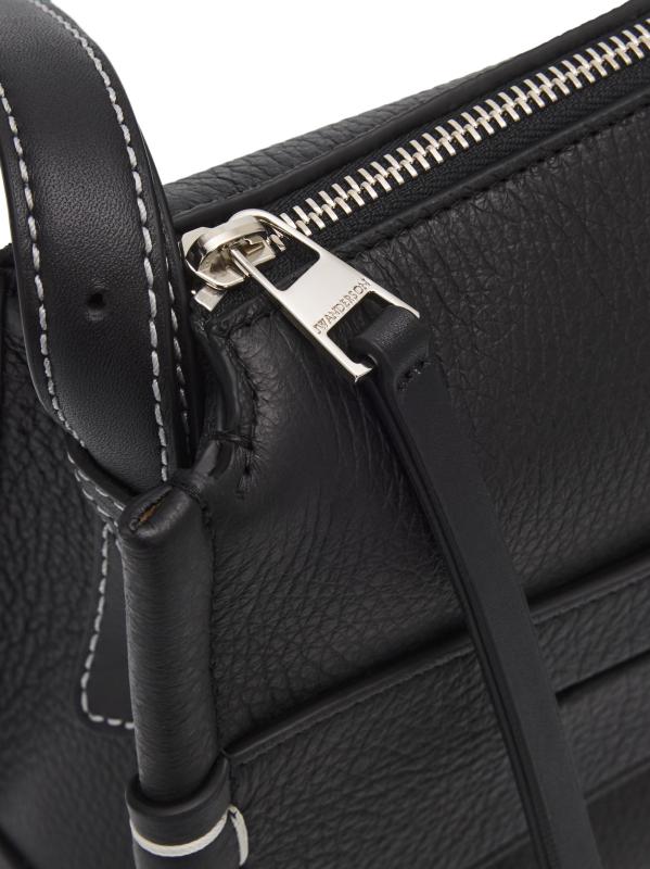 Made in Italy, this small messenger bag from JW Anderson is crafted of grained leather. The silhouette is distinguished by a signature penny keeper with structural box stitching, a detail inspired by the timeless profile of a traditional loafer.