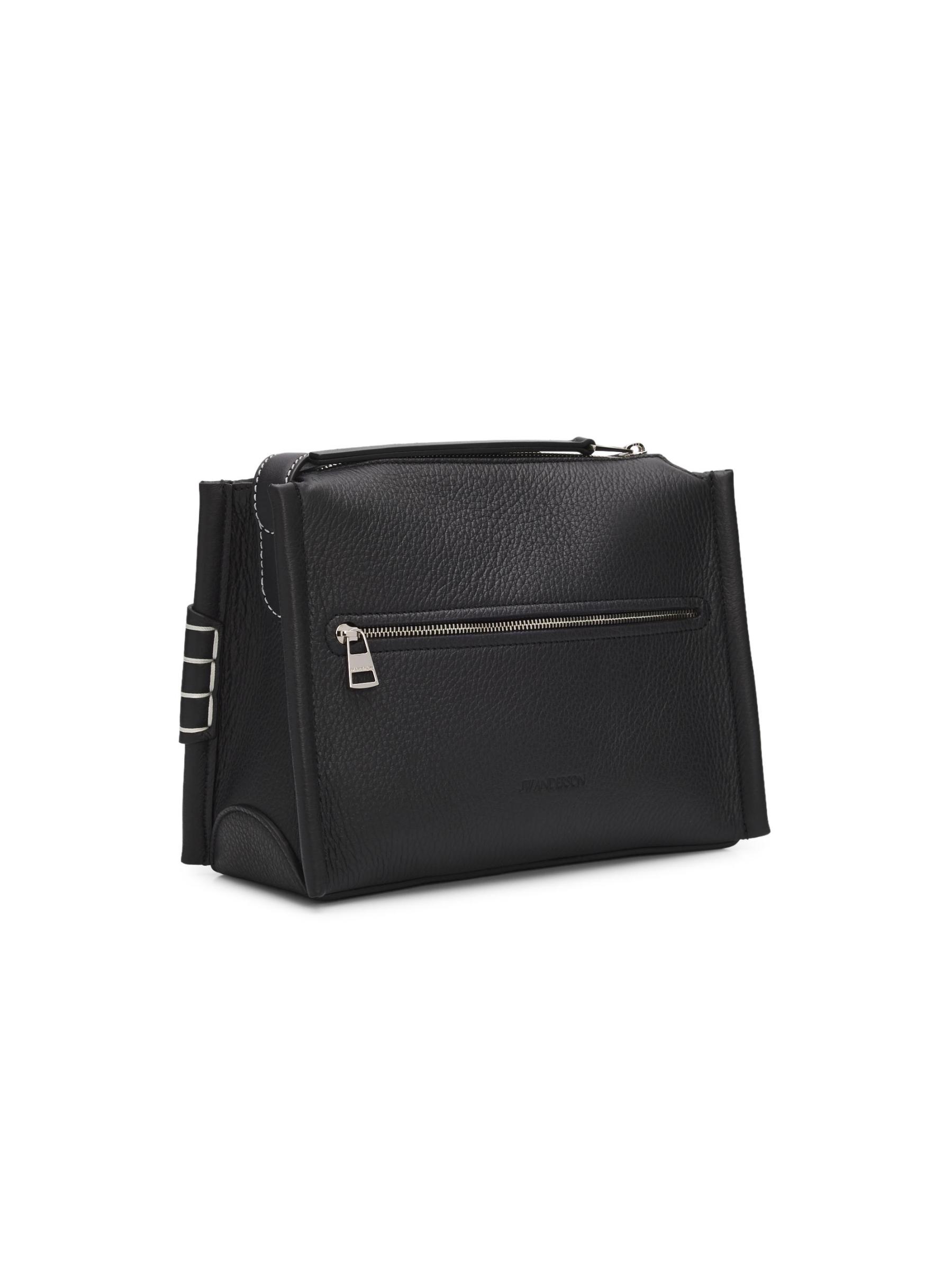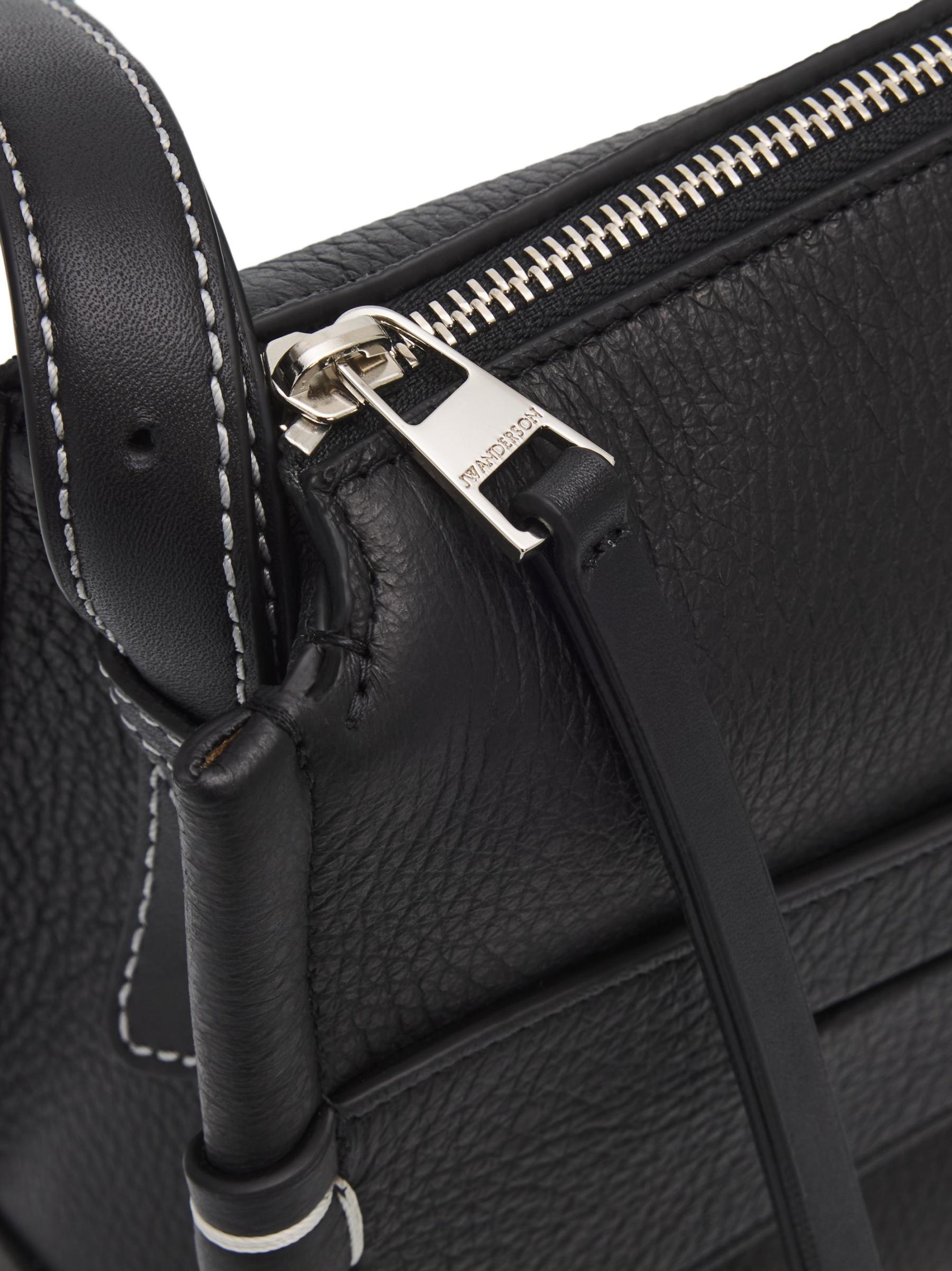 Made in Italy, this small messenger bag from JW Anderson is crafted of grained leather. The silhouette is distinguished by a signature penny keeper with structural box stitching, a detail inspired by the timeless profile of a traditional loafer.Adjustable shoulder strap Top zip closure Leather Lining: suede Made in Italy