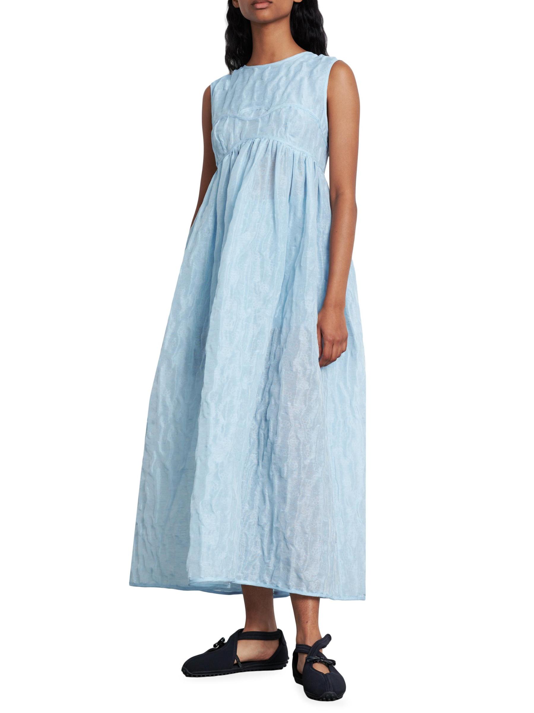 Set with a boxy silhouette, Cecilie Bahnsen's charming Soleil midi-dress flaunts a textured finish and bodice binding details. This elegant style showcases a crewneck and sleeveless design.