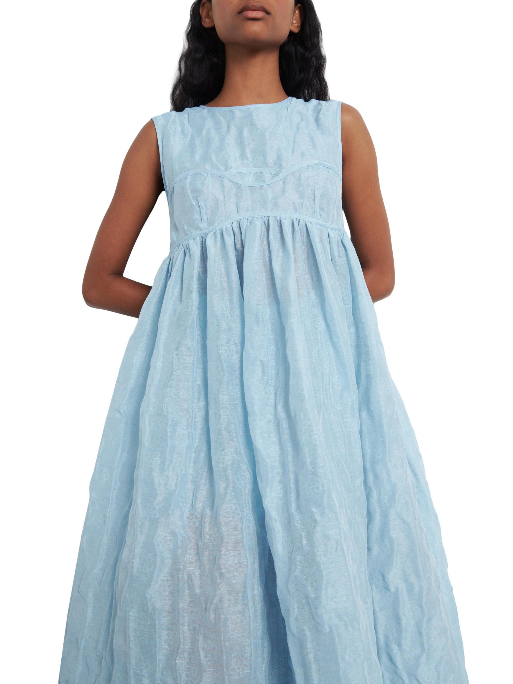 Set with a boxy silhouette, Cecilie Bahnsen's charming Soleil midi-dress flaunts a textured finish and bodice binding details. This elegant style showcases a crewneck and sleeveless design.Crewneck Sleeveless Back zip 65% linen/35% polyamide Lining 100% Bemberg™ cupro Machine wash Made in Italy