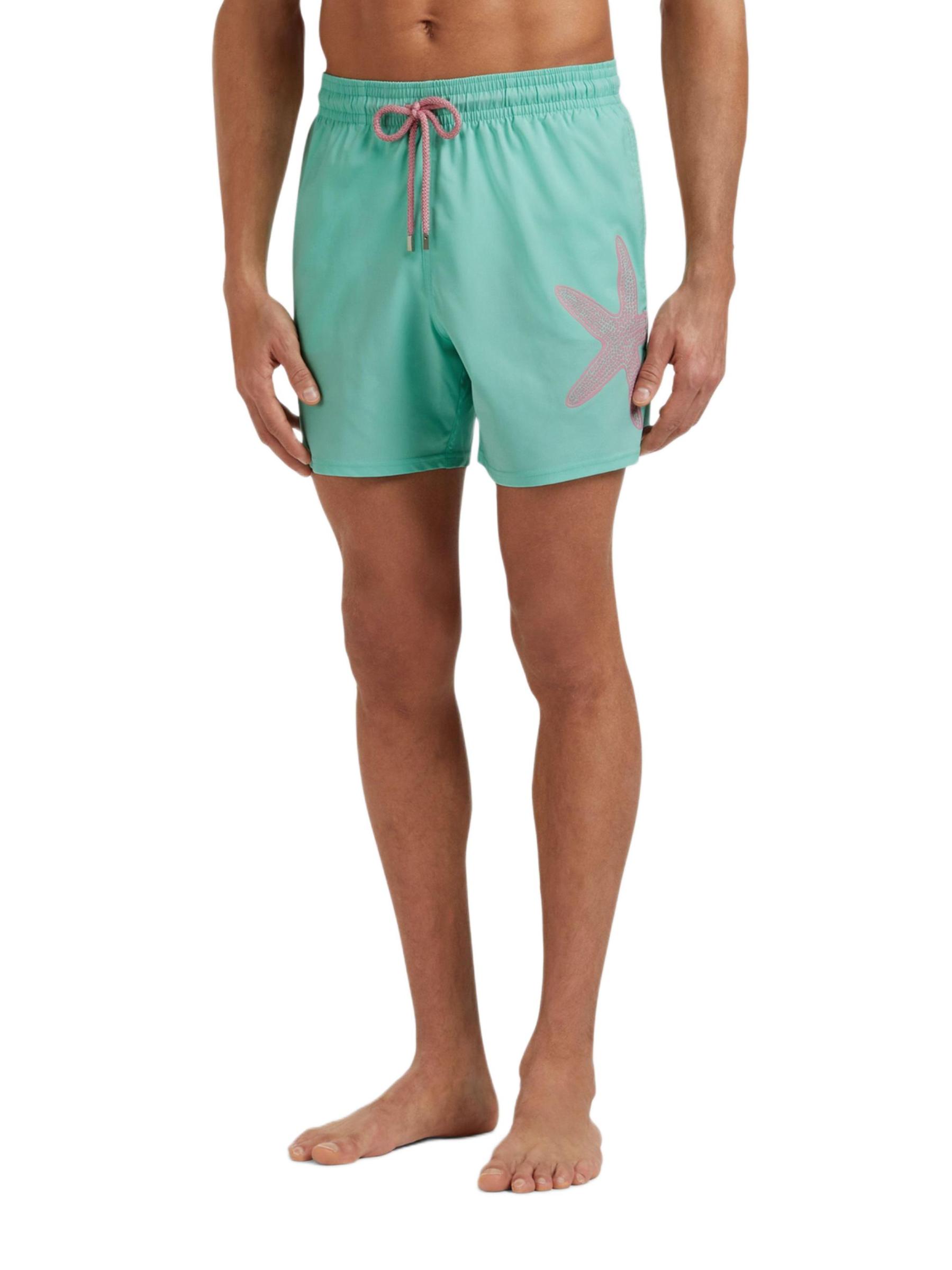 Printed with an eye-catching placed starfish, the Starlette swim shorts from Vilebrequin are crafted of printed stretch fabric for an easy fit. A drawstring waist and multiple pockets complete the design.Elasticized drawstring waist Side-seam pockets, back flap pocket Pulls on 98% recycled polyamide/2% elastane Lining: 100% Cotton Machine wash Imported