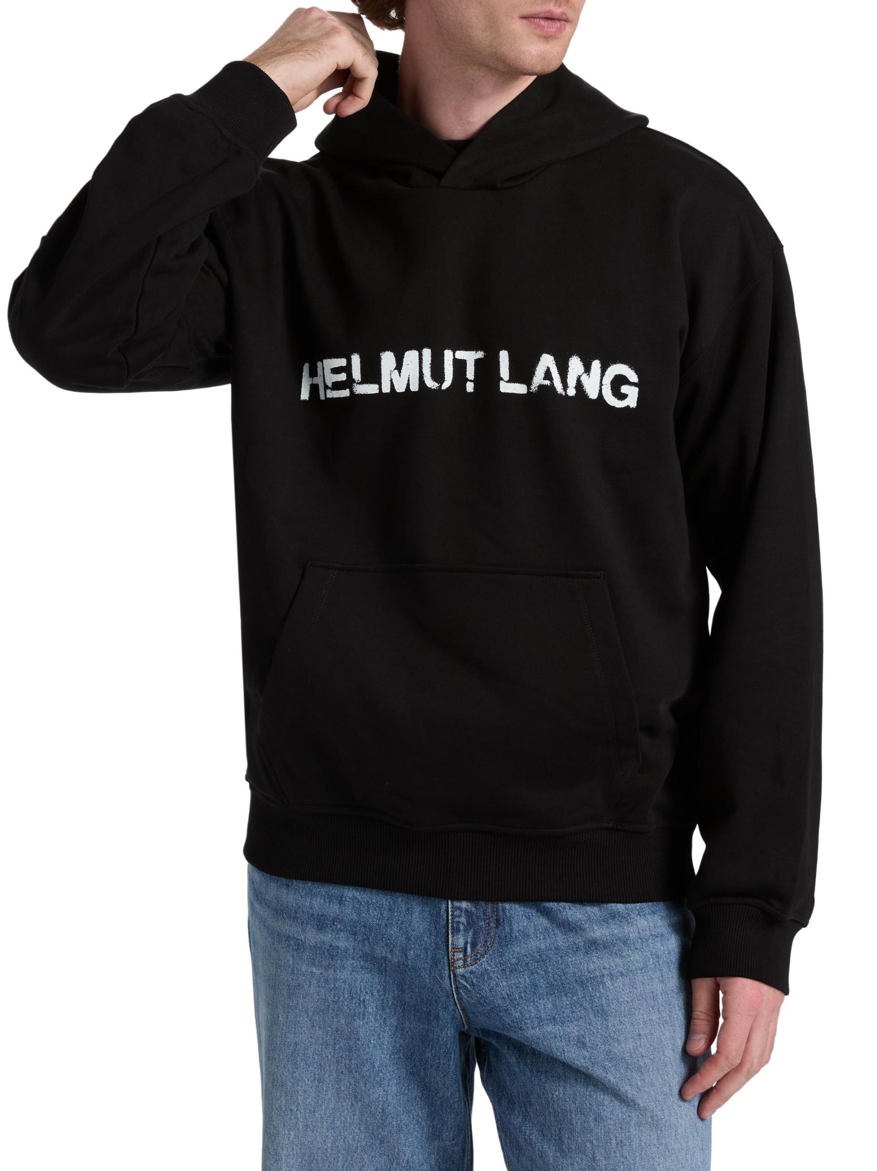 Crafted of compact cotton French terry, this hoodie is detailed with a Helmut Lang stencil logo on the chest. A kangaroo pocket and rib-knit trim lend added comfort to this style.